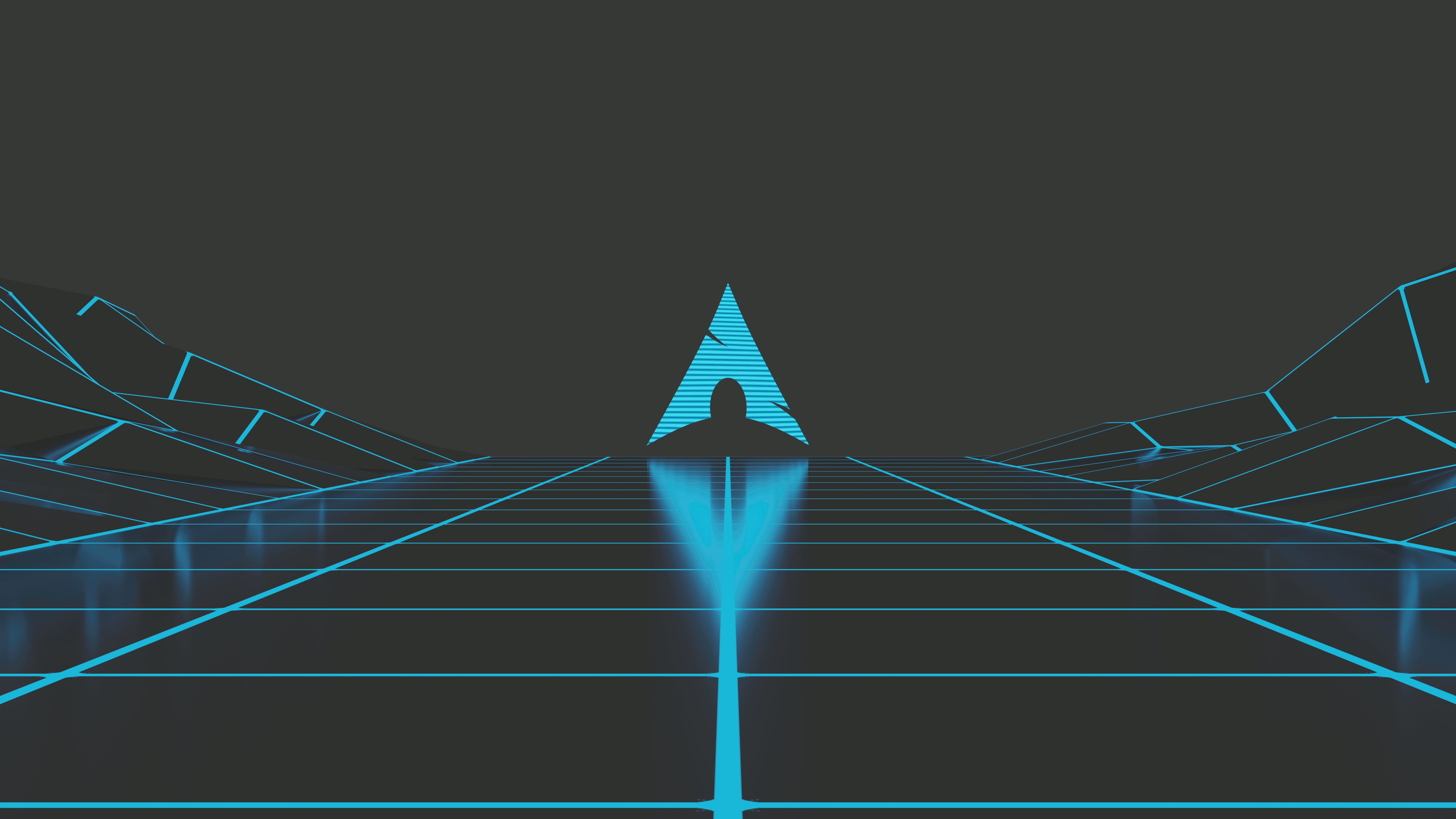 Arch Linux壁紙, シンセウェーブ壁紙, レトロネオングリッド, 4K壁紙, Linuxデスクトップ壁紙, サイバーパンク壁紙, ネオンシアングリッド, ワイヤーフレーム風景, 高解像度壁紙, Arch Linuxロゴ