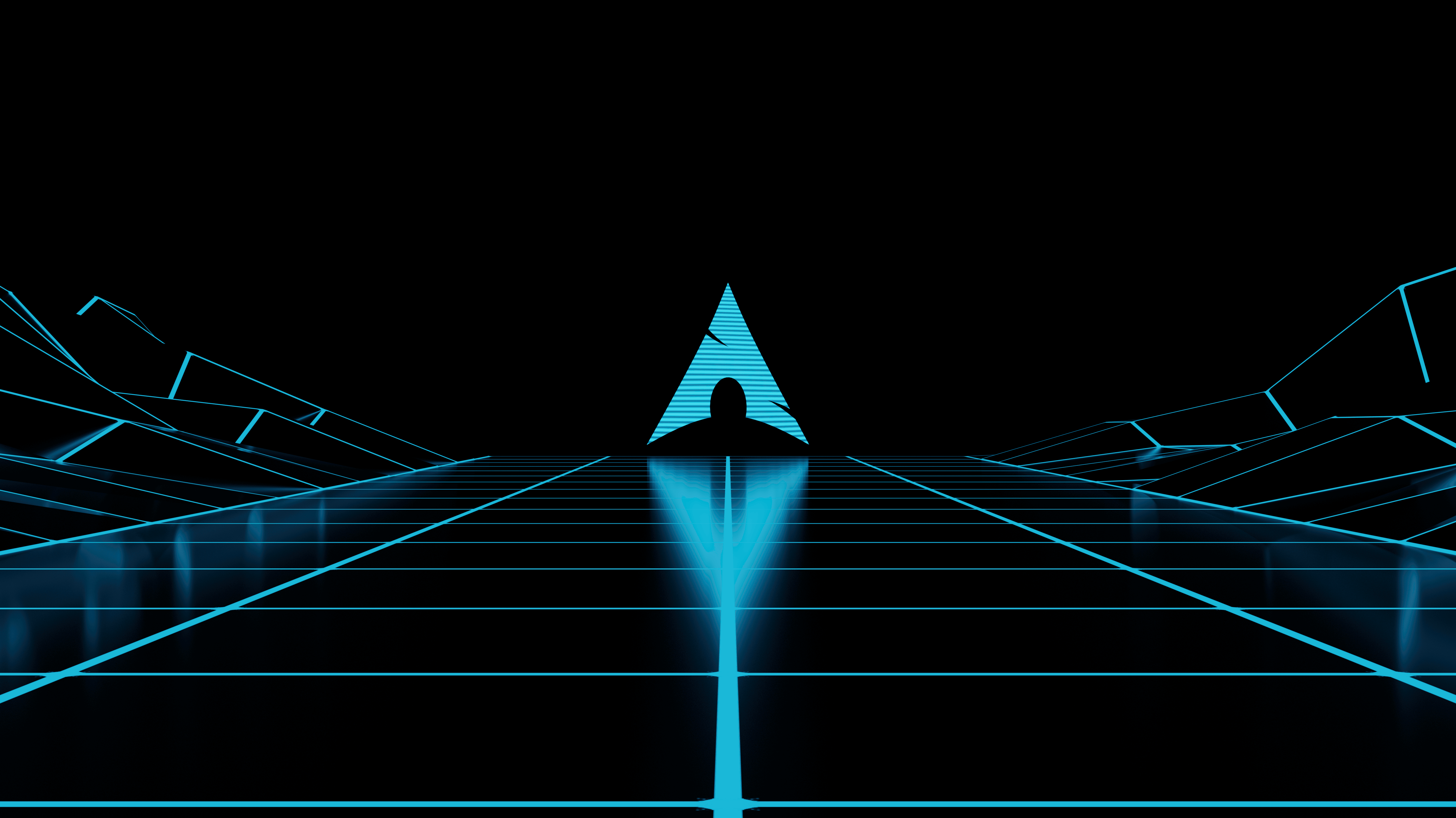Arch Linux, synthwave, 4K wallpaper, neon, cyberpunk, retro-futuristic, high resolution, desktop background, geometric design, cyan blue