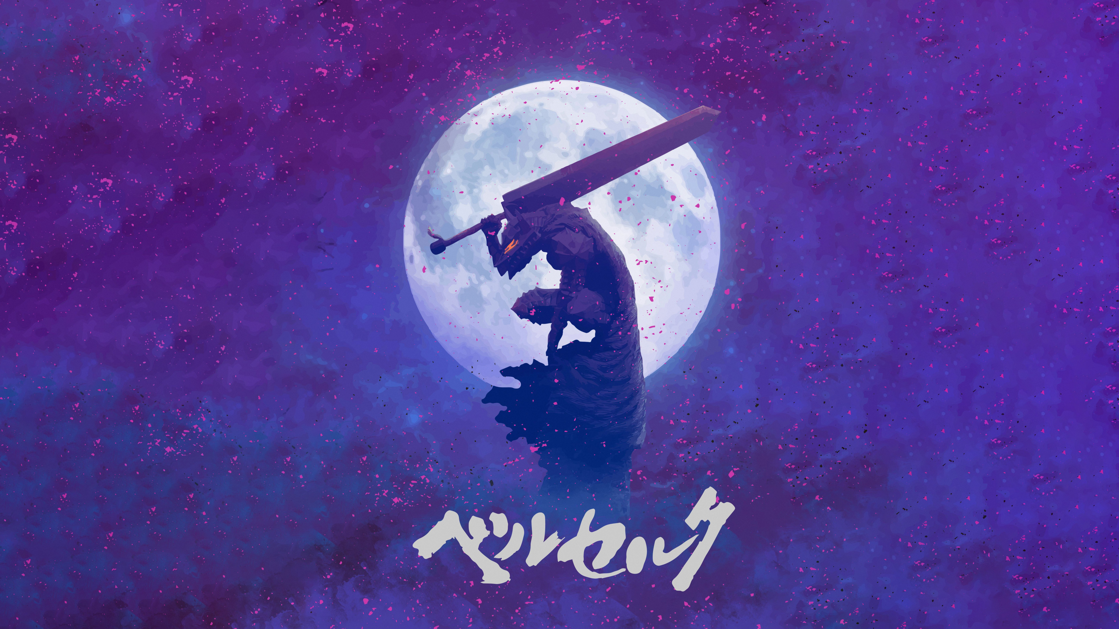 Berserk wallpaper, Guts 4K, anime wallpaper, high resolution, desktop background, moon warrior, Dragonslayer sword, purple aesthetic, manga art, ultra HD wallpaper