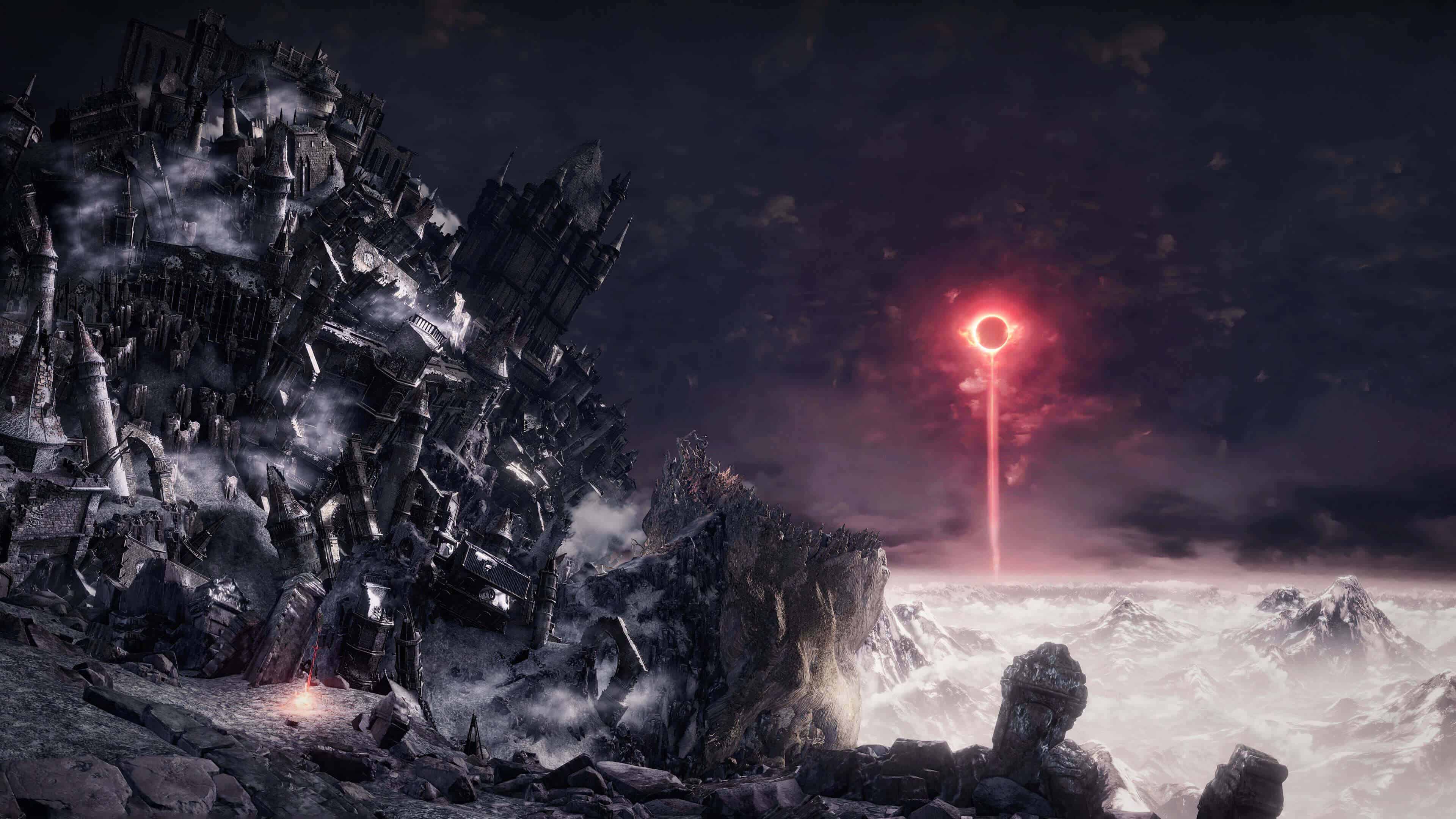 Dark Souls III wallpaper, Ringed City 4K, dark fantasy wallpaper, FromSoftware art, ultra HD gaming wallpaper, dark souls eclipse, gothic castle ruins, 4K wallpaper, dark souls landscape, high resolution fantasy