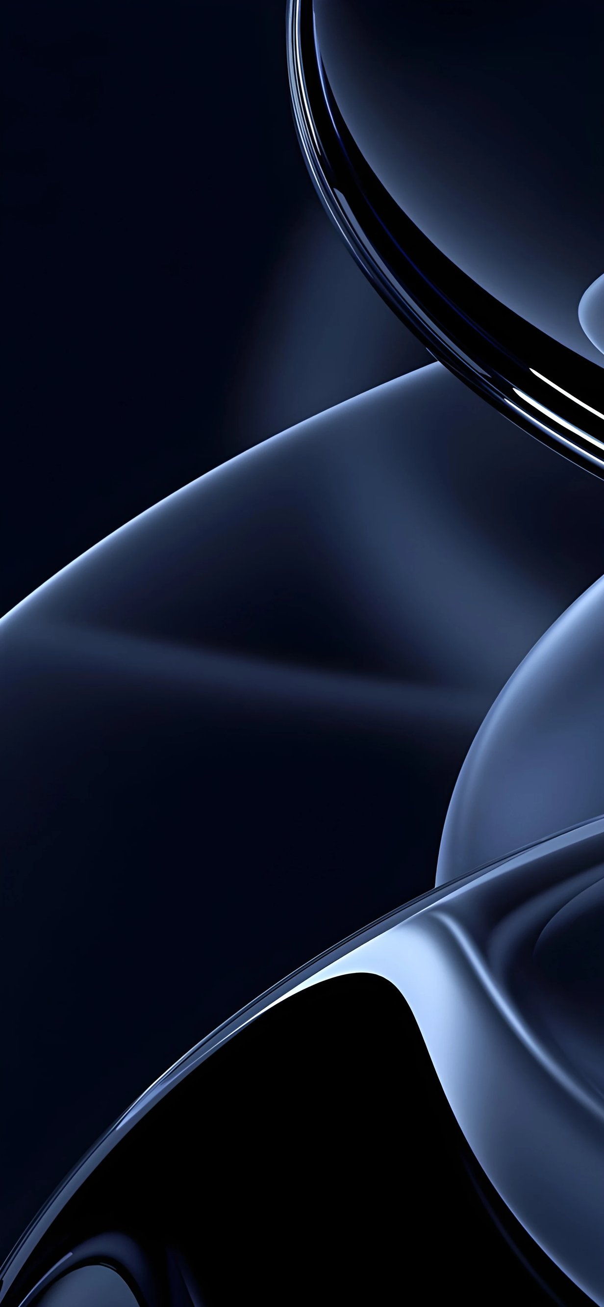 Stunning deep navy blue abstract wallpaper featuring smooth glossy spheres and flowing organic curves. Crafted for iPhone and iOS devices, this ultra-high 4K resolution design delivers a premium, futuristic aesthetic with rich dark tones and elegant light reflections.