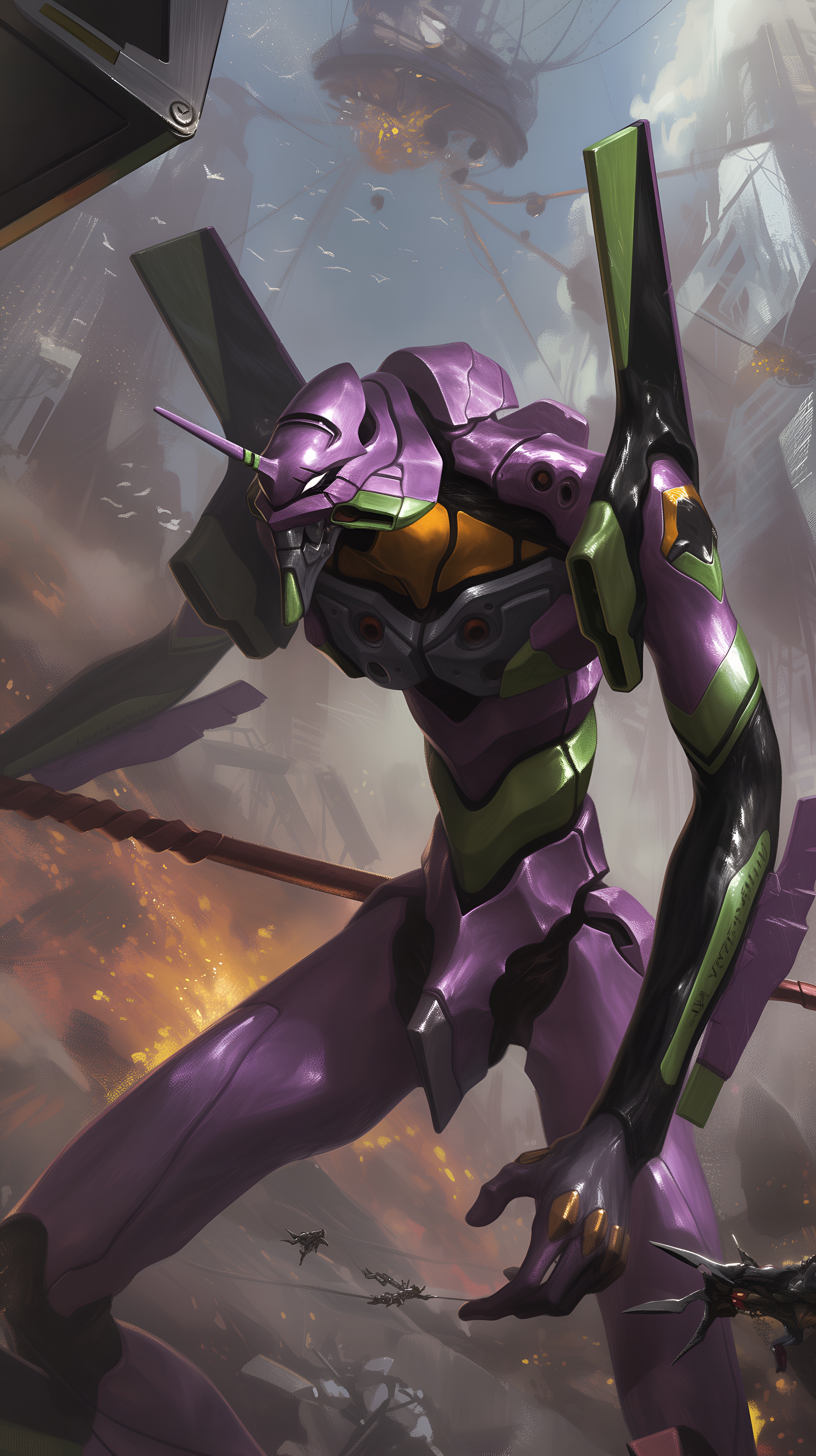EVA Unit-01 Battle Scene Phone Wallpaper 4K