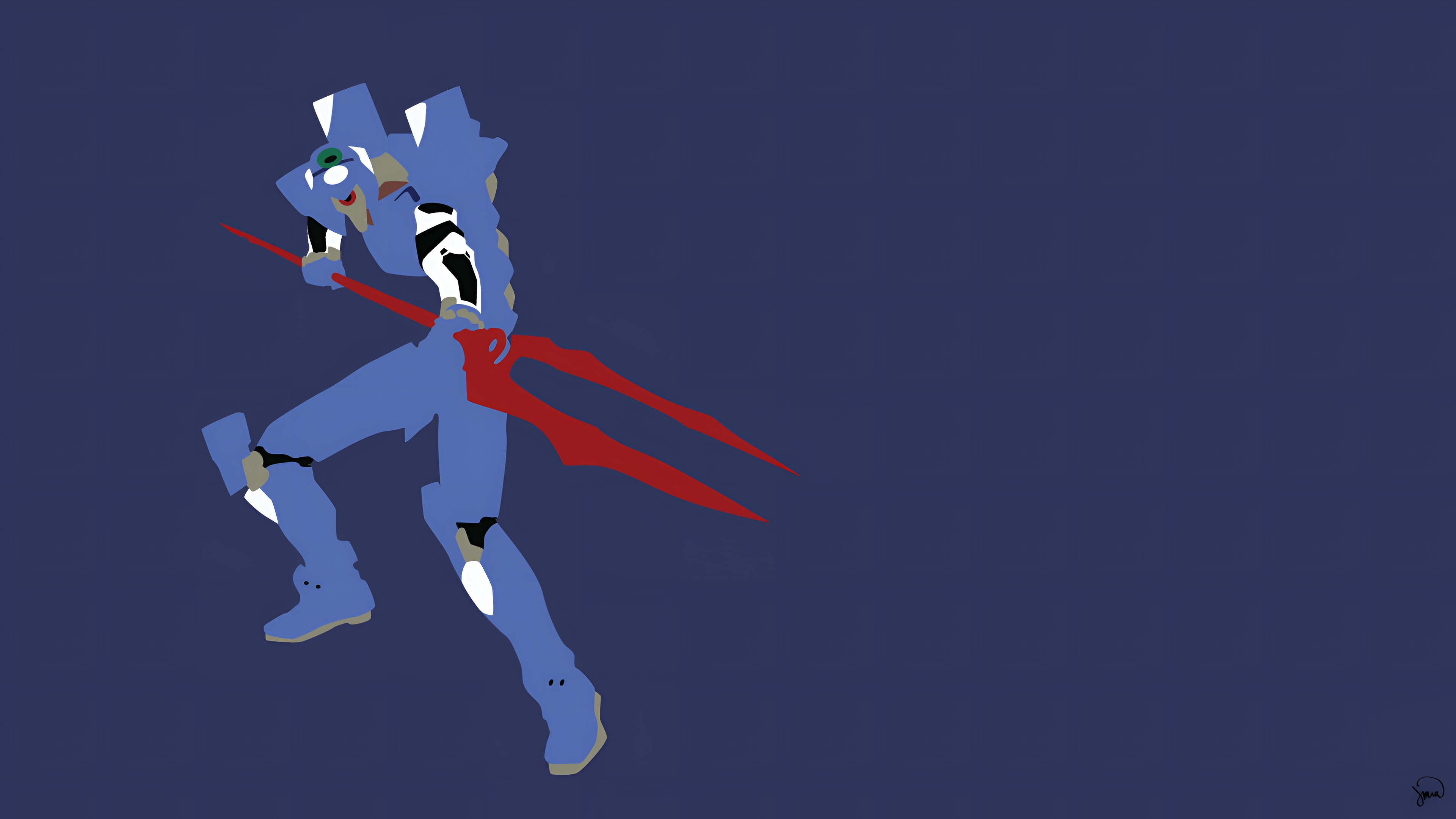 Neon Genesis Evangelion wallpaper, EVA Unit-01, Spear of Longinus, minimalist anime wallpaper, 4K wallpaper, NGE fan art, anime mecha wallpaper, high resolution wallpaper, evangelion minimalistic art