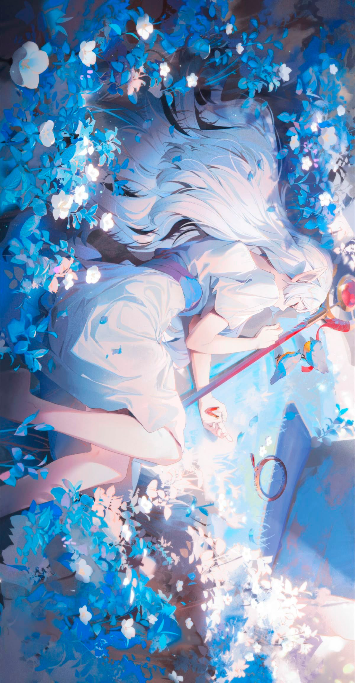 Frieren Blue Flowers Mobile Wallpaper 4K