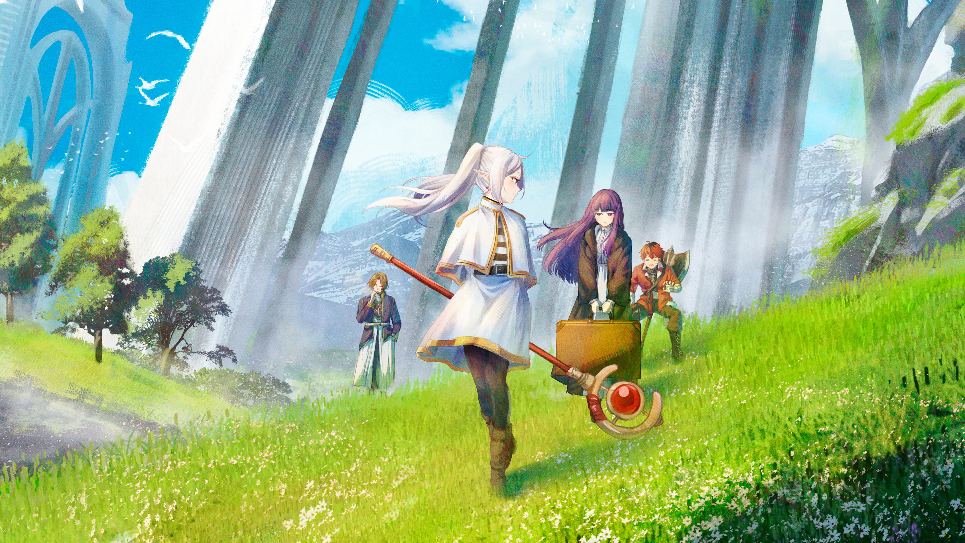 Frieren wallpaper, Beyond Journey's End wallpaper, anime wallpaper 4K, high resolution anime art, fantasy landscape wallpaper, elf mage wallpaper, adventure anime wallpaper, epic fantasy scenery, anime desktop background, 4K ultra HD wallpaper
