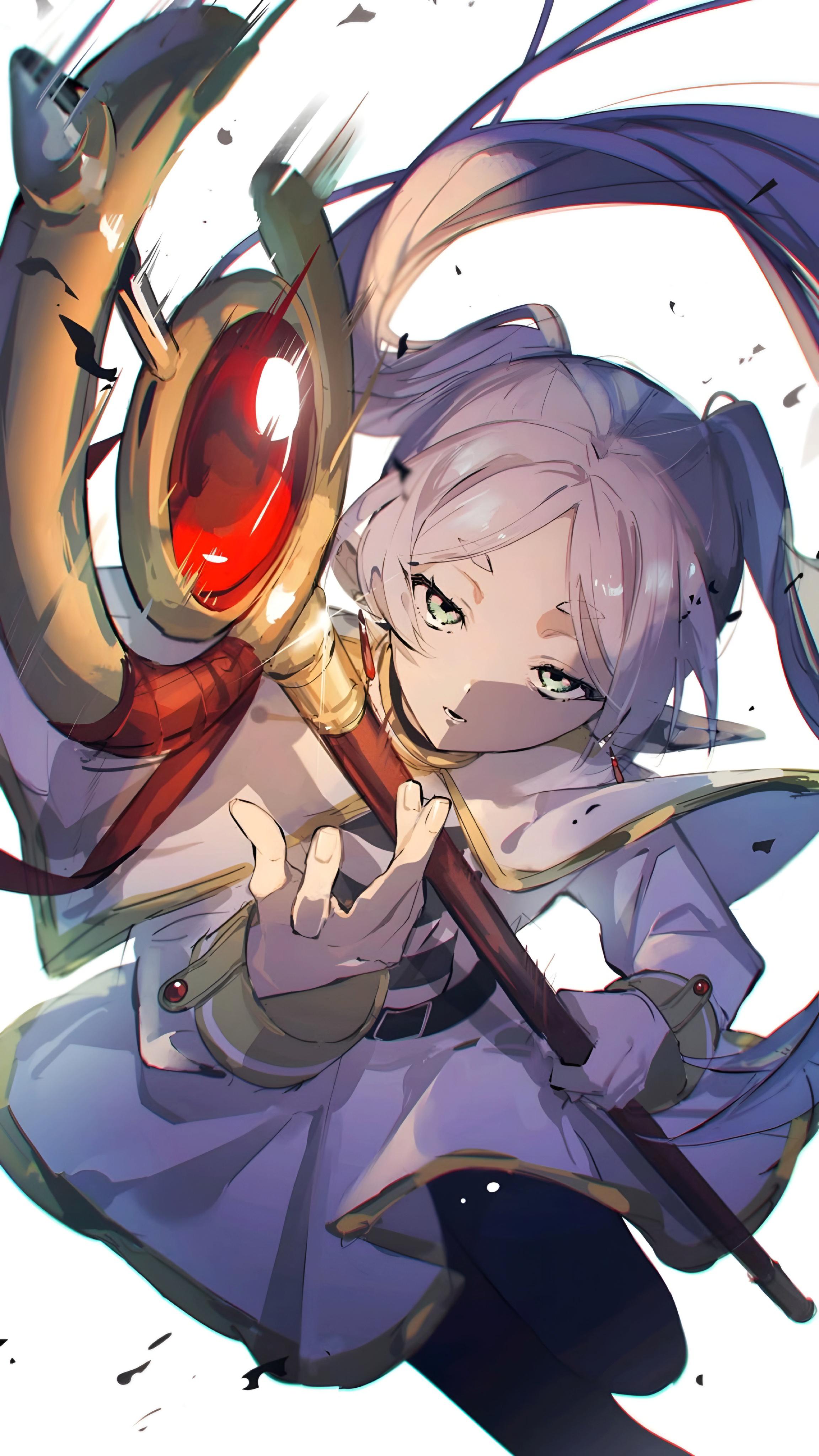 Frieren wallpaper, Frieren Beyond Journey's End, anime wallpaper 4K, high resolution anime, mage anime girl, Frieren fan art, ultra HD wallpaper, anime magic staff, Frieren artwork