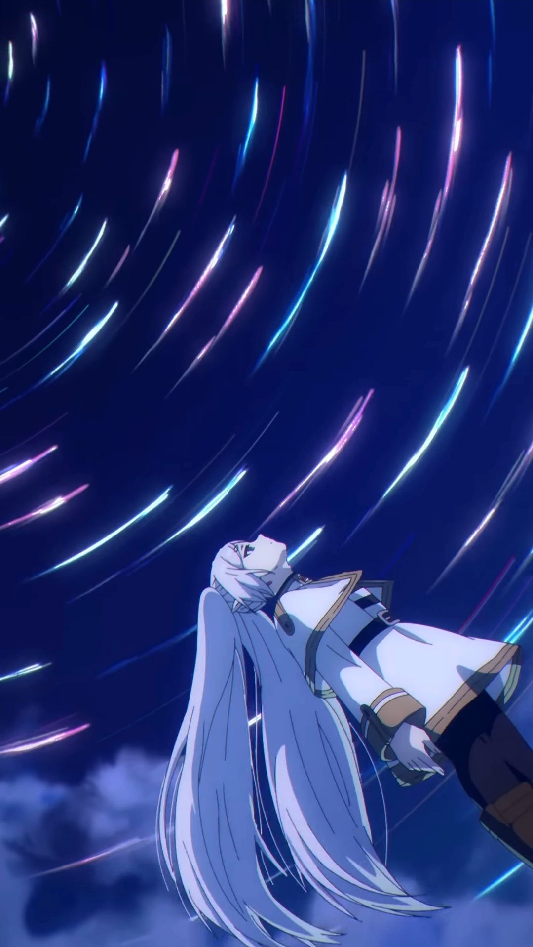 Frieren Beyond Journey's End, meteor shower wallpaper, 4K anime wallpaper, shooting stars background, high resolution anime, night sky wallpaper, colorful meteors, ultra HD wallpaper, Frieren art