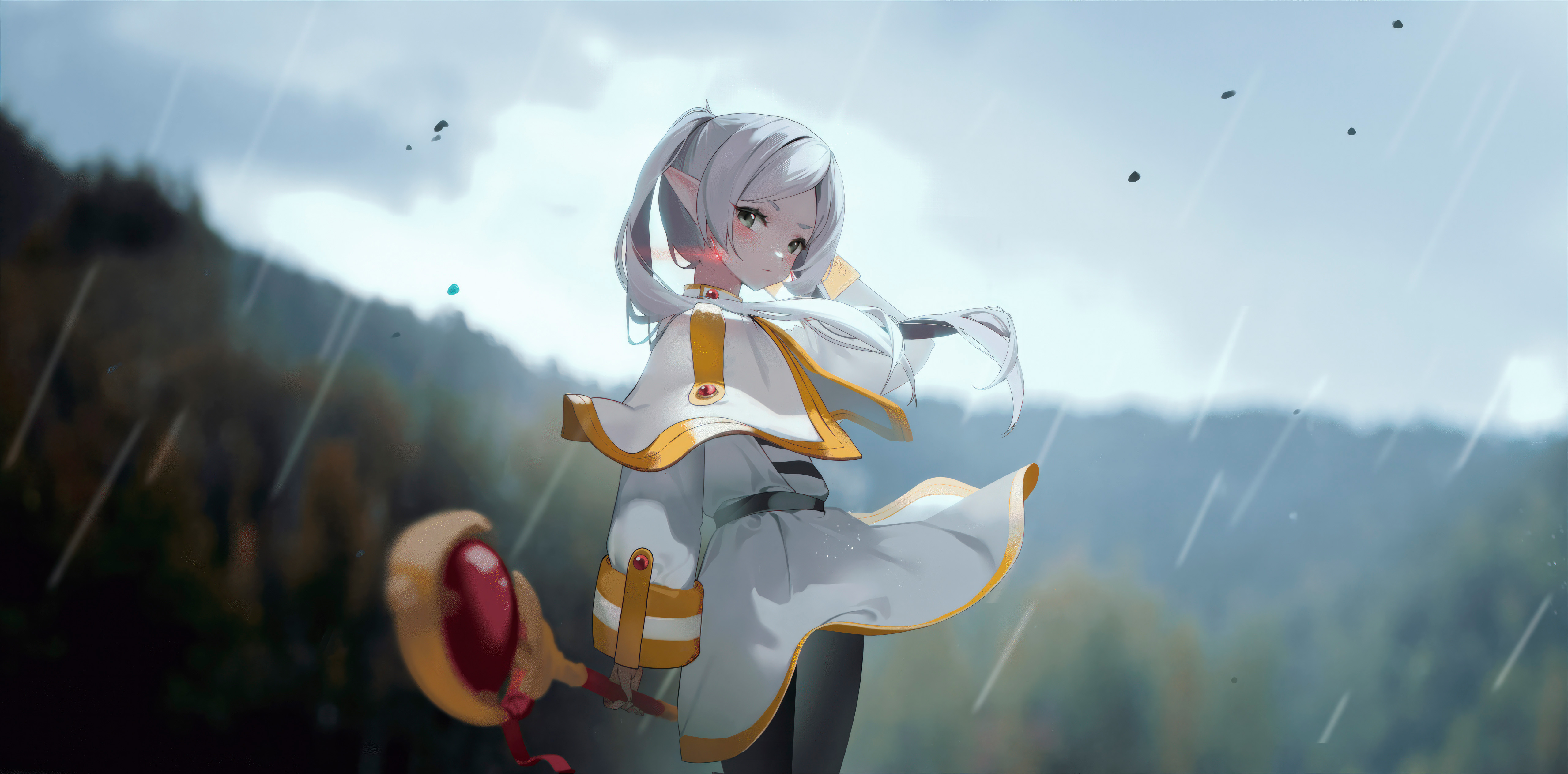 Frieren wallpaper 4K, Beyond Journey's End wallpaper, anime wallpaper high resolution, mountain anime background, elf mage wallpaper, Frieren fanart, fantasy anime wallpaper, silver hair anime girl, adventure anime wallpaper, ultra HD anime art