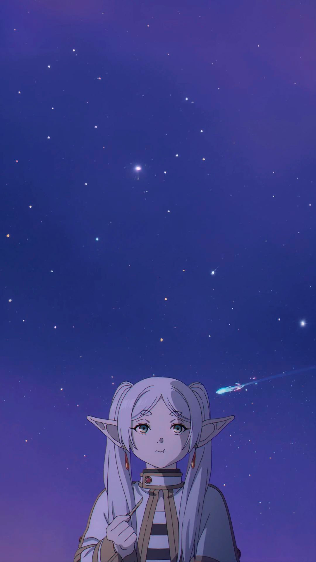 Frieren wallpaper, anime wallpaper 4K, Beyond Journey's End, starry night wallpaper, mobile wallpaper, elf anime wallpaper, high resolution anime art, cosmic wallpaper, purple aesthetic, shooting star wallpaper