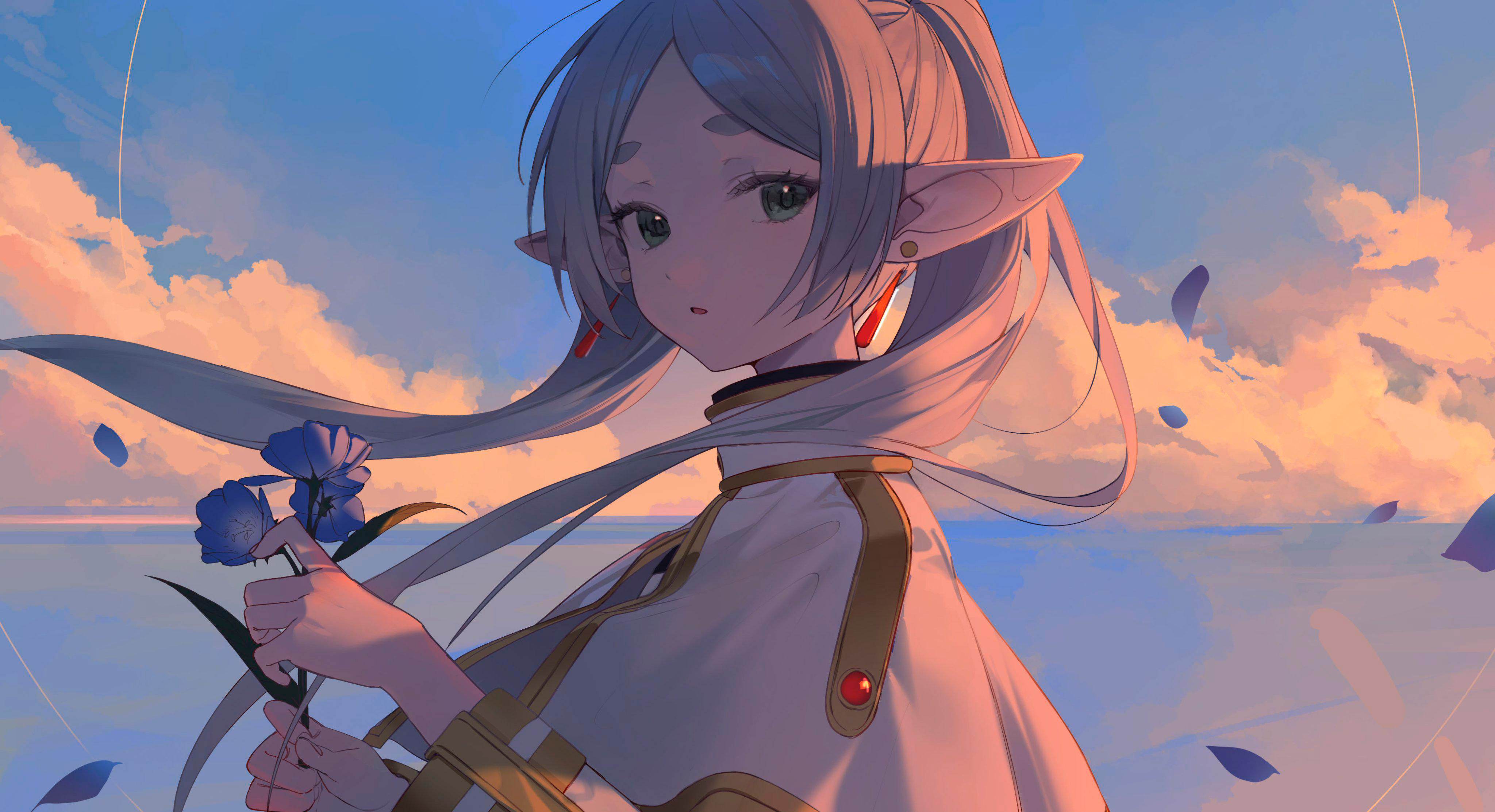Frieren wallpaper, anime wallpaper 4K, Beyond Journey's End, sunset anime wallpaper, elf mage wallpaper, high resolution anime art, sky wallpaper, Frieren desktop background, ultra HD anime wallpaper, cloud anime scenery