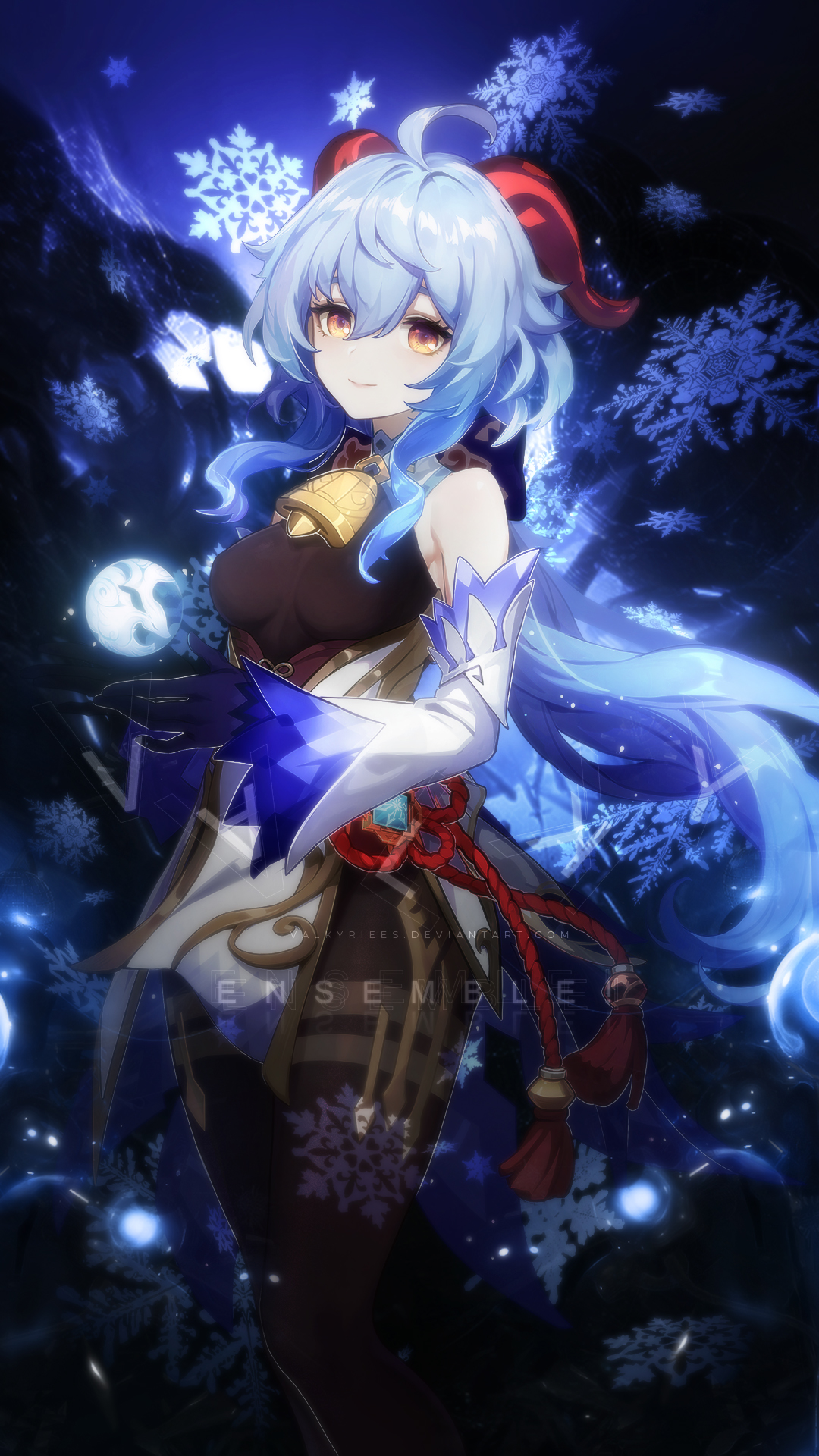 Ganyu, Genshin Impact, anime wallpaper, 4K, high resolution, cryo character, blue aesthetic, snowflakes, RPG, miHoYo