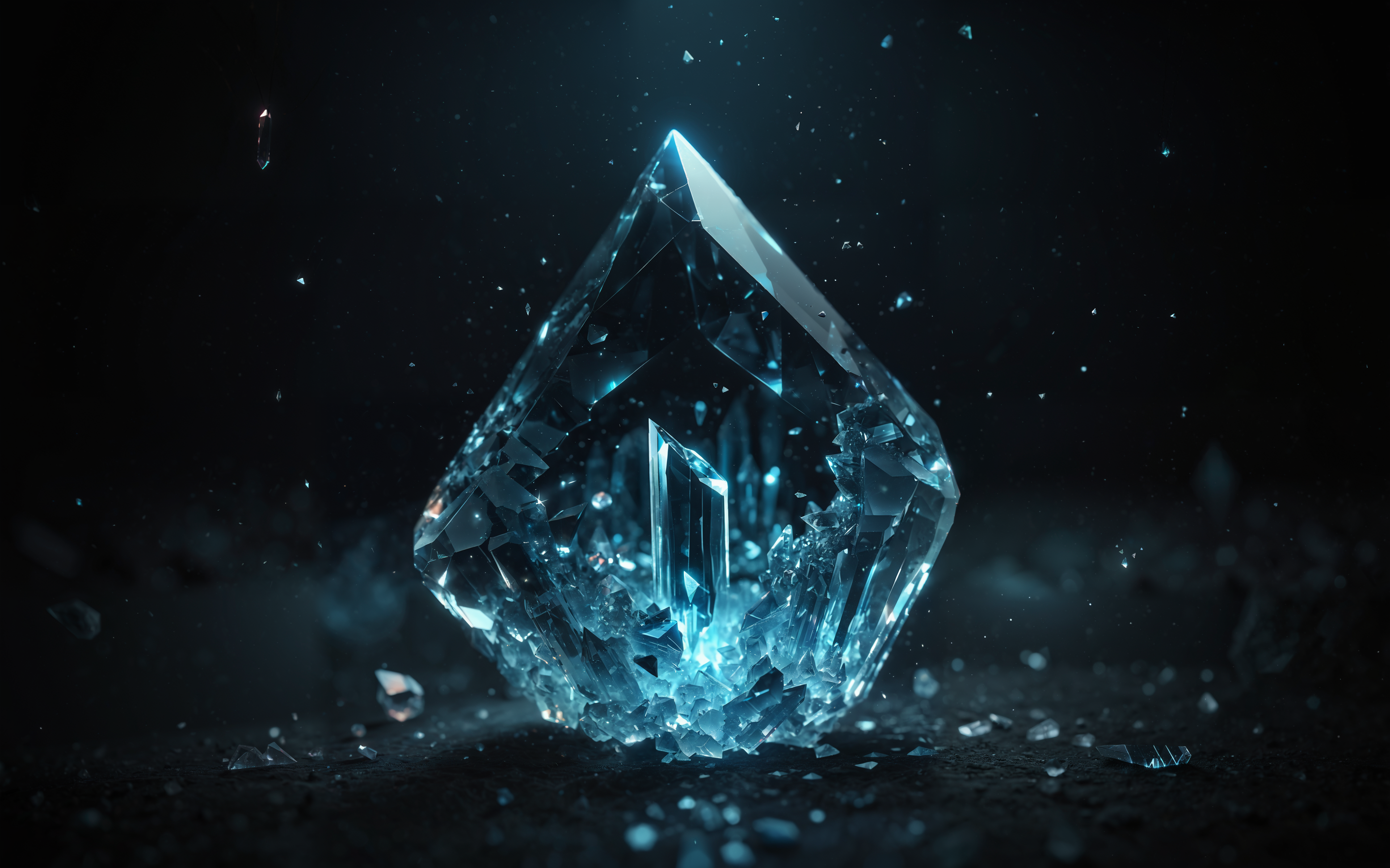 crystal wallpaper, 4K wallpaper, glowing crystal, blue gemstone, high resolution wallpaper, dark background, shattered crystal, cyan light, fantasy wallpaper, ultra HD