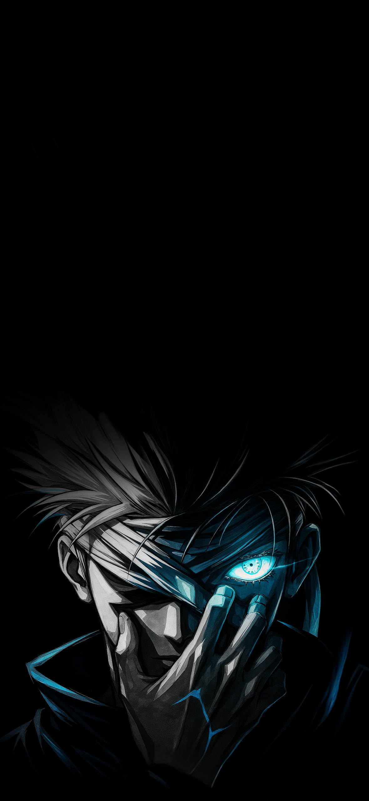 Jujutsu Kaisen wallpaper, Gojo Satoru 4K, anime dark wallpaper, glowing eye anime, JJK wallpaper, AMOLED wallpaper, high resolution anime, Gojo Satoru art, dark anime aesthetic, Jujutsu Kaisen 4K