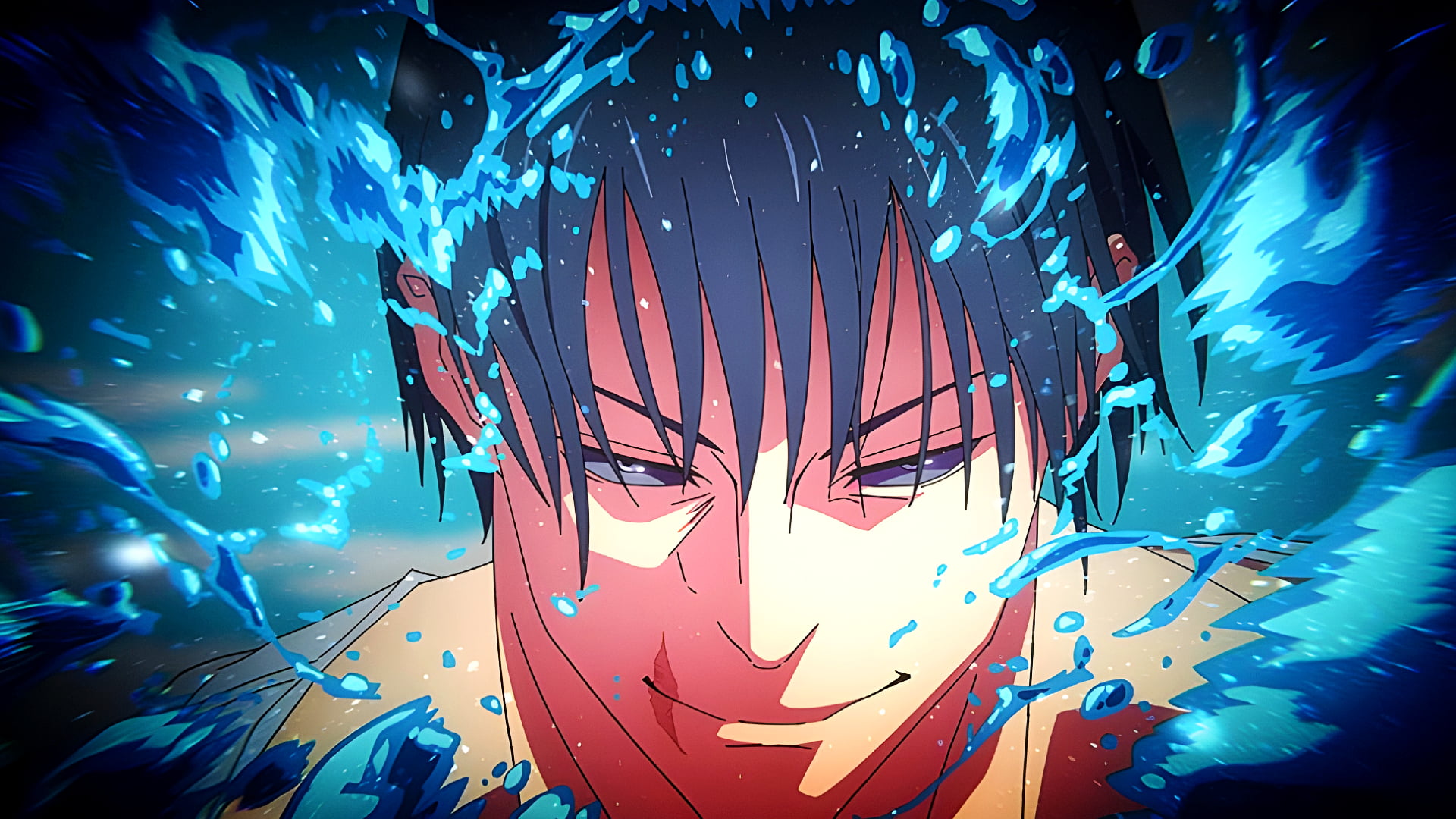 Jujutsu Kaisen wallpaper, Gojo Satoru 4K, anime wallpaper HD, Jujutsu Kaisen 4K, high resolution anime, blue water splash anime, Gojo Satoru art, JJK wallpaper, ultra HD anime wallpaper, Jujutsu Kaisen fan art