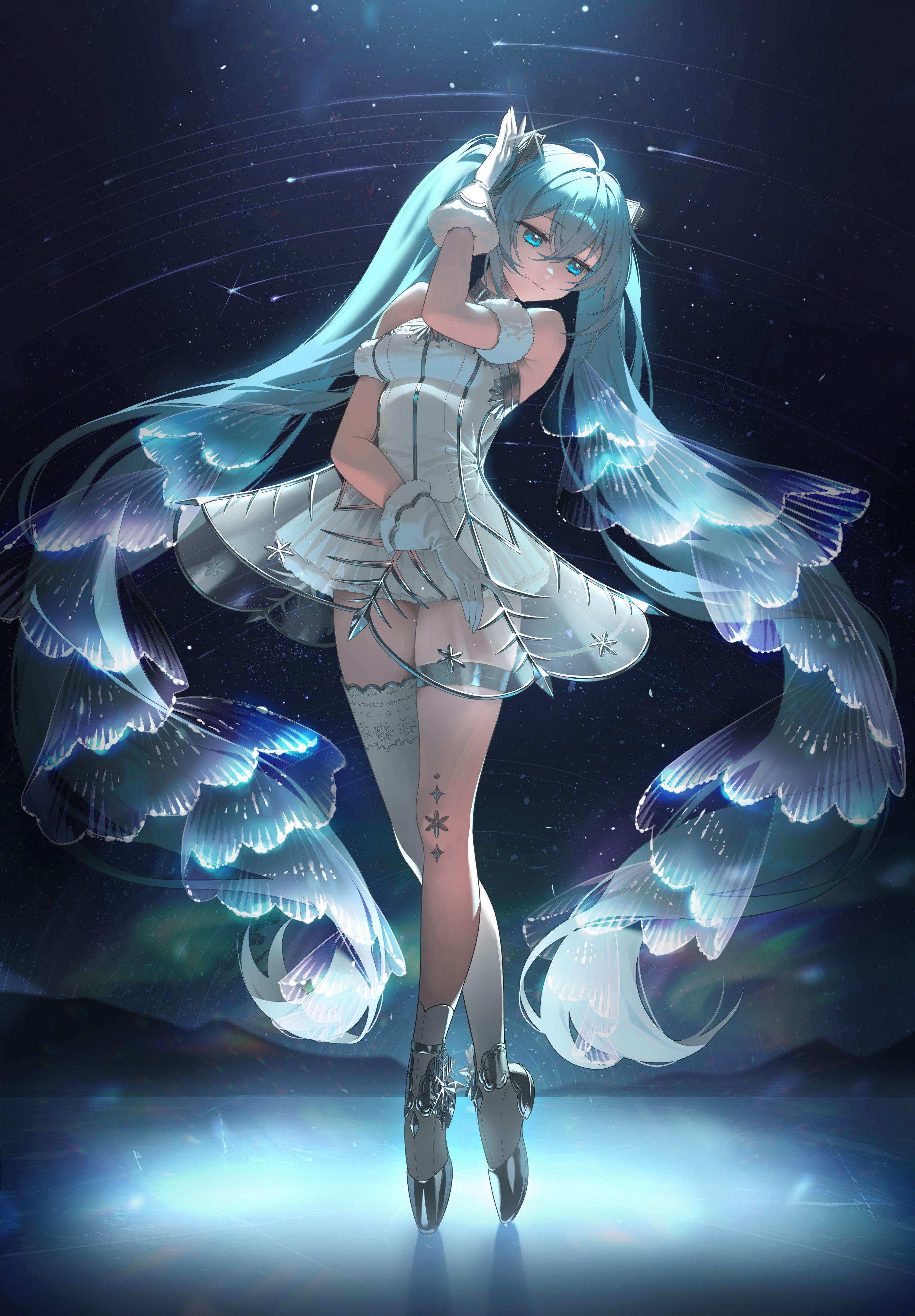 Hatsune Miku wallpaper, 4K anime wallpaper, Hatsune Miku fantasy, high resolution vocaloid art, Miku celestial wings, anime girl wallpaper, vocaloid 4K, Hatsune Miku white dress, ethereal anime wallpaper, ultra HD anime art