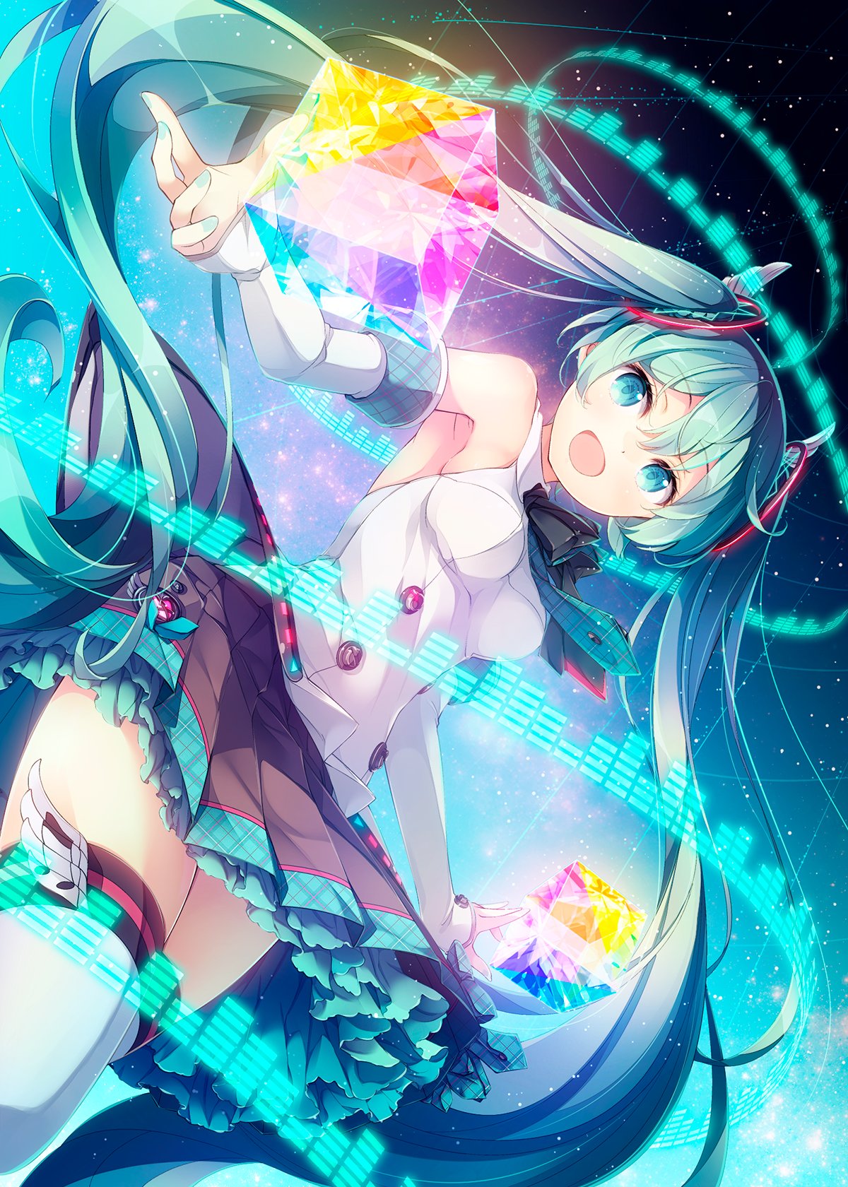Hatsune Miku wallpaper, 4K anime wallpaper, Vocaloid Miku art, high resolution anime, Miku crystal magic, cyan twintails Miku, anime girl wallpaper, Vocaloid digital art, ultra HD anime, Miku space wallpaper