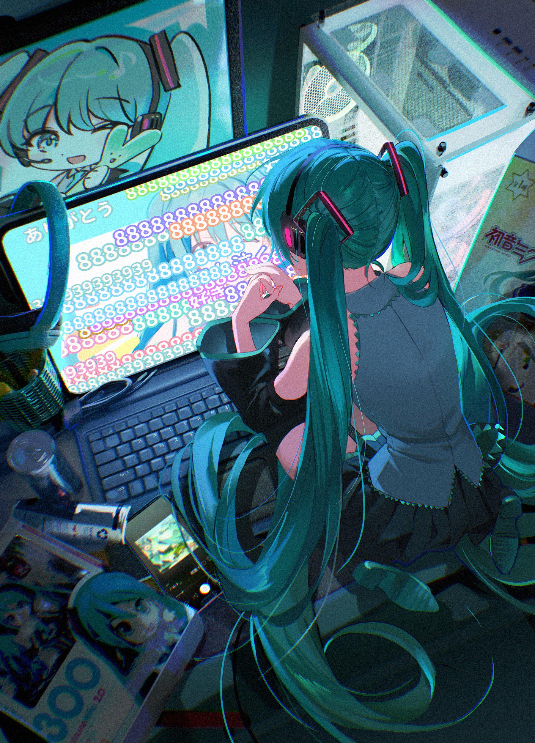 Hatsune Miku wallpaper, anime 4K wallpaper, Vocaloid gaming setup, Miku gamer room, high resolution anime art, teal hair anime girl, Miku fan art, ultra HD wallpaper, cyberpunk anime aesthetic, Vocaloid wallpaper