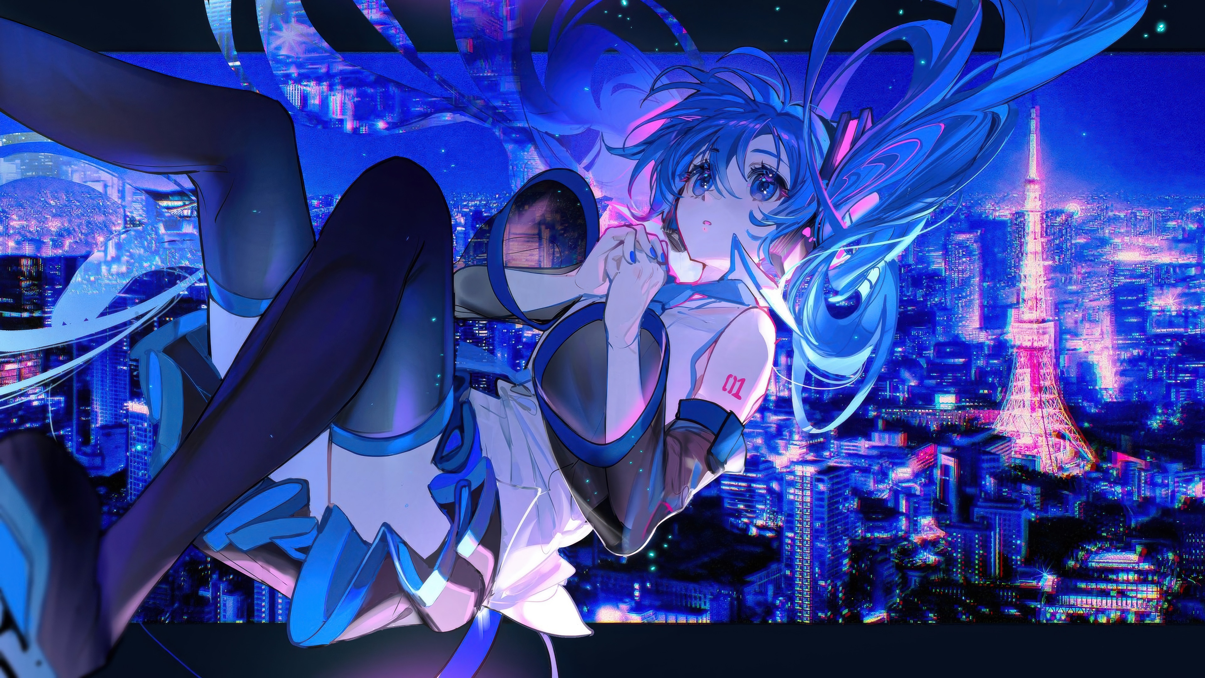 Hatsune Miku wallpaper, anime wallpaper 4K, Tokyo night skyline, Vocaloid anime art, neon city anime, high resolution anime wallpaper, Miku 4K wallpaper, cyberpunk anime girl, anime desktop wallpaper, blue hair anime