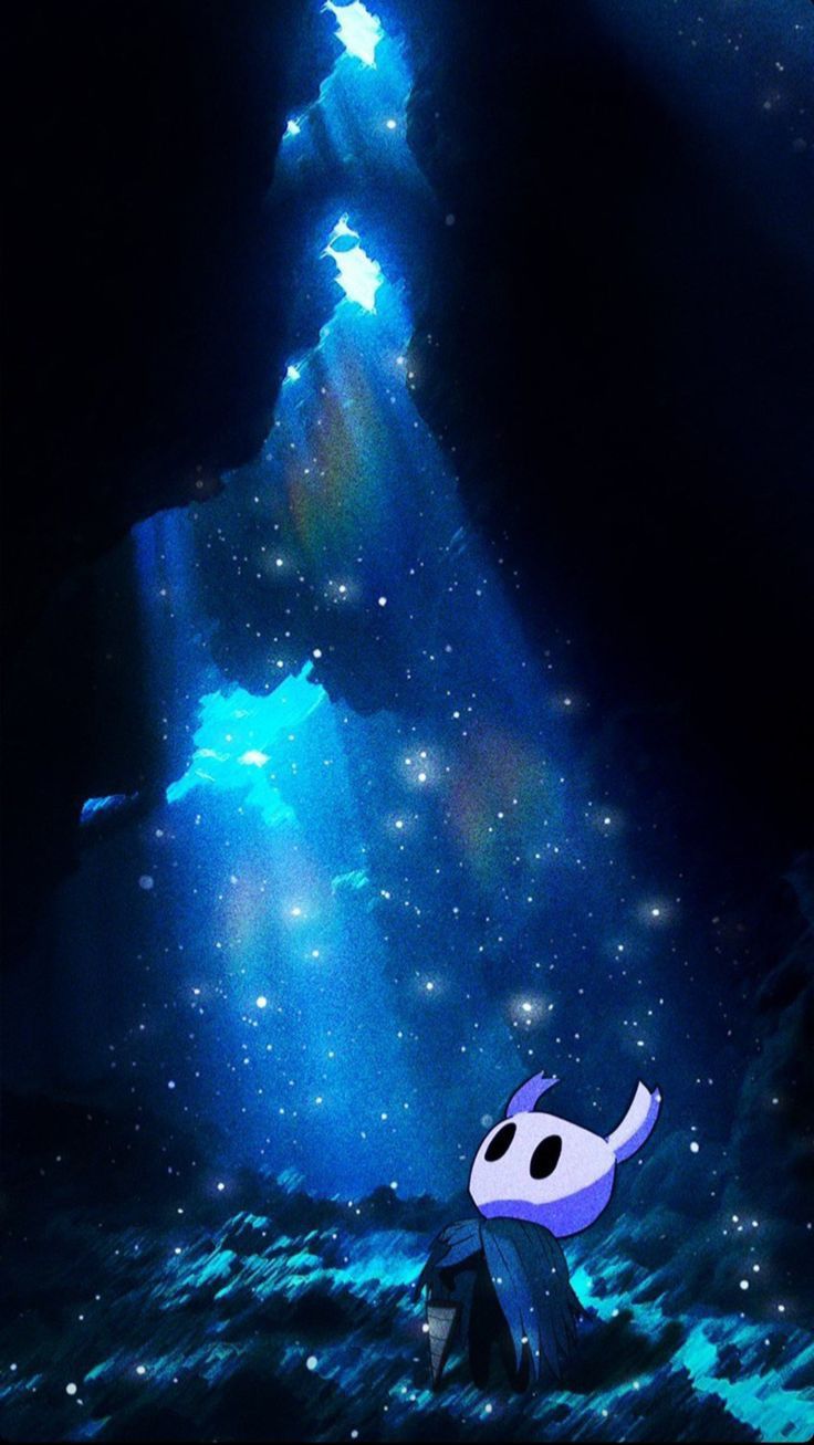 Hollow Knight wallpaper, 4K wallpaper, Hollow Knight cave, cosmic wallpaper, Hollow Knight fan art, high resolution gaming wallpaper, blue nebula wallpaper, indie game art, Hollow Knight 4K, dark fantasy wallpaper