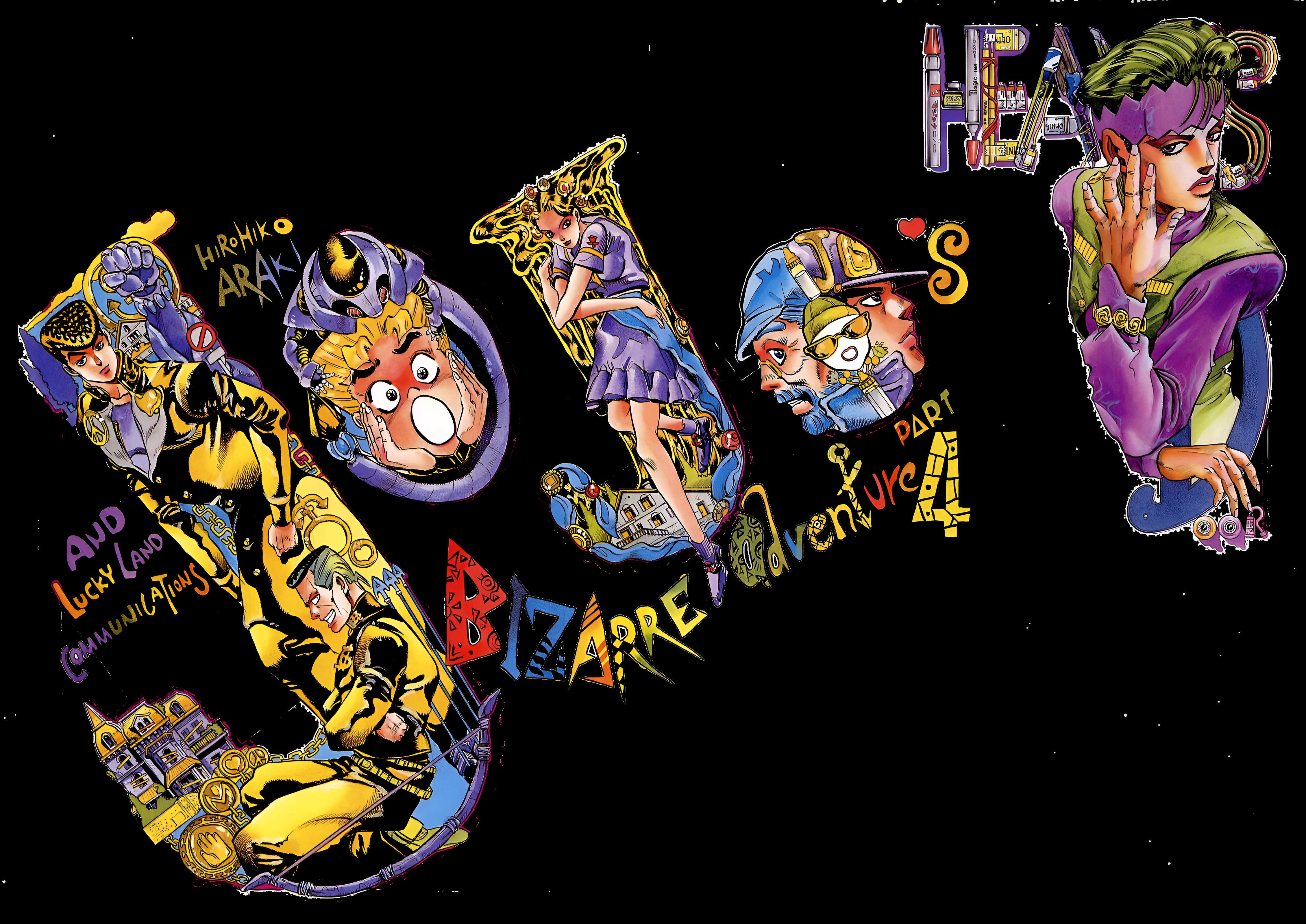 Stunning 4K high-resolution wallpaper featuring JoJo's Bizarre Adventure Part 4 Diamond is Unbreakable characters, including Josuke and key cast, with vibrant colors and iconic manga art style by Hirohiko Araki.