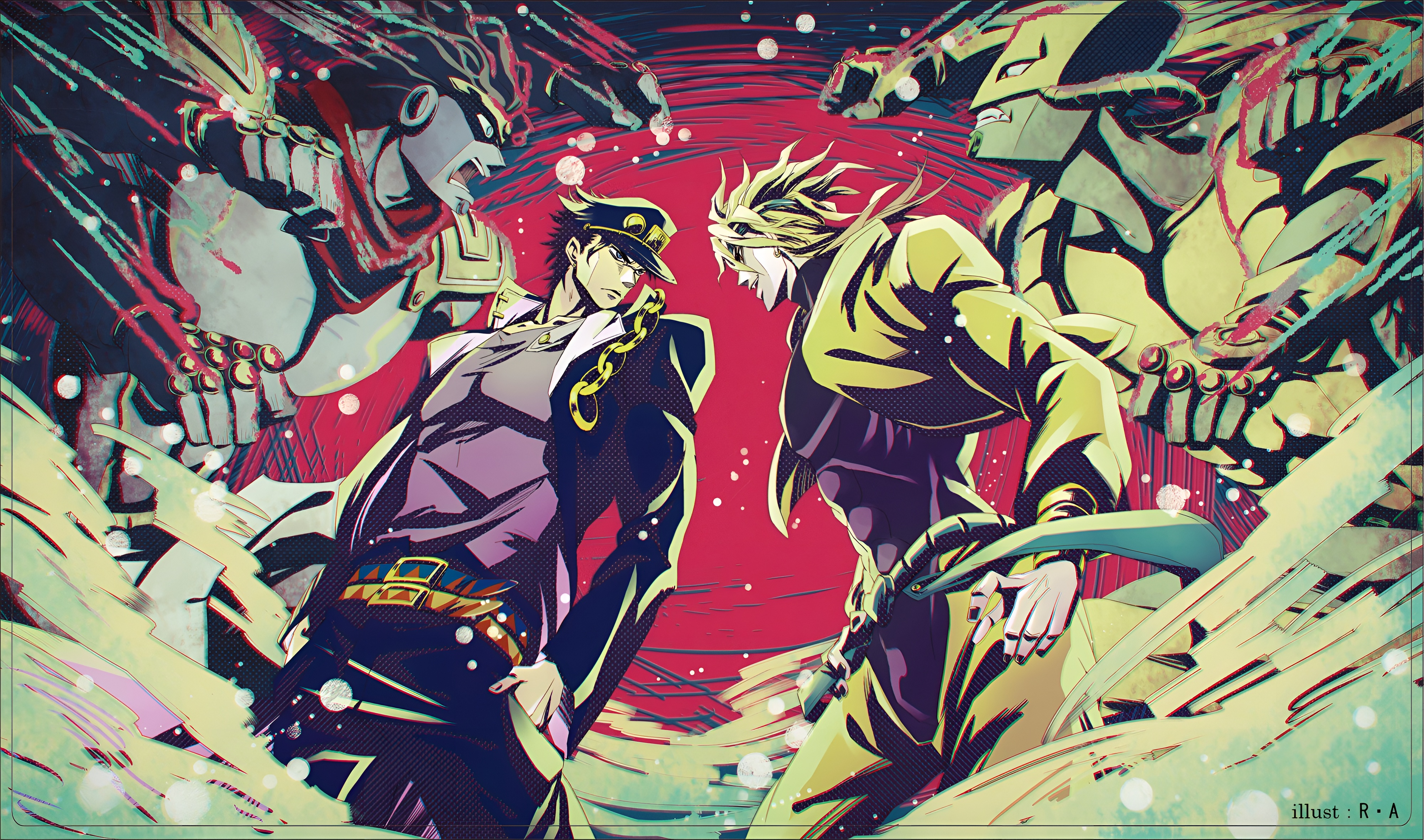 JoJo's Bizarre Adventure wallpaper, Jotaro VS DIO, Star Platinum, The World Stand, 4K anime wallpaper, high resolution JoJo art, Stardust Crusaders, anime fan art, JoJo 4K illustration, epic anime battle