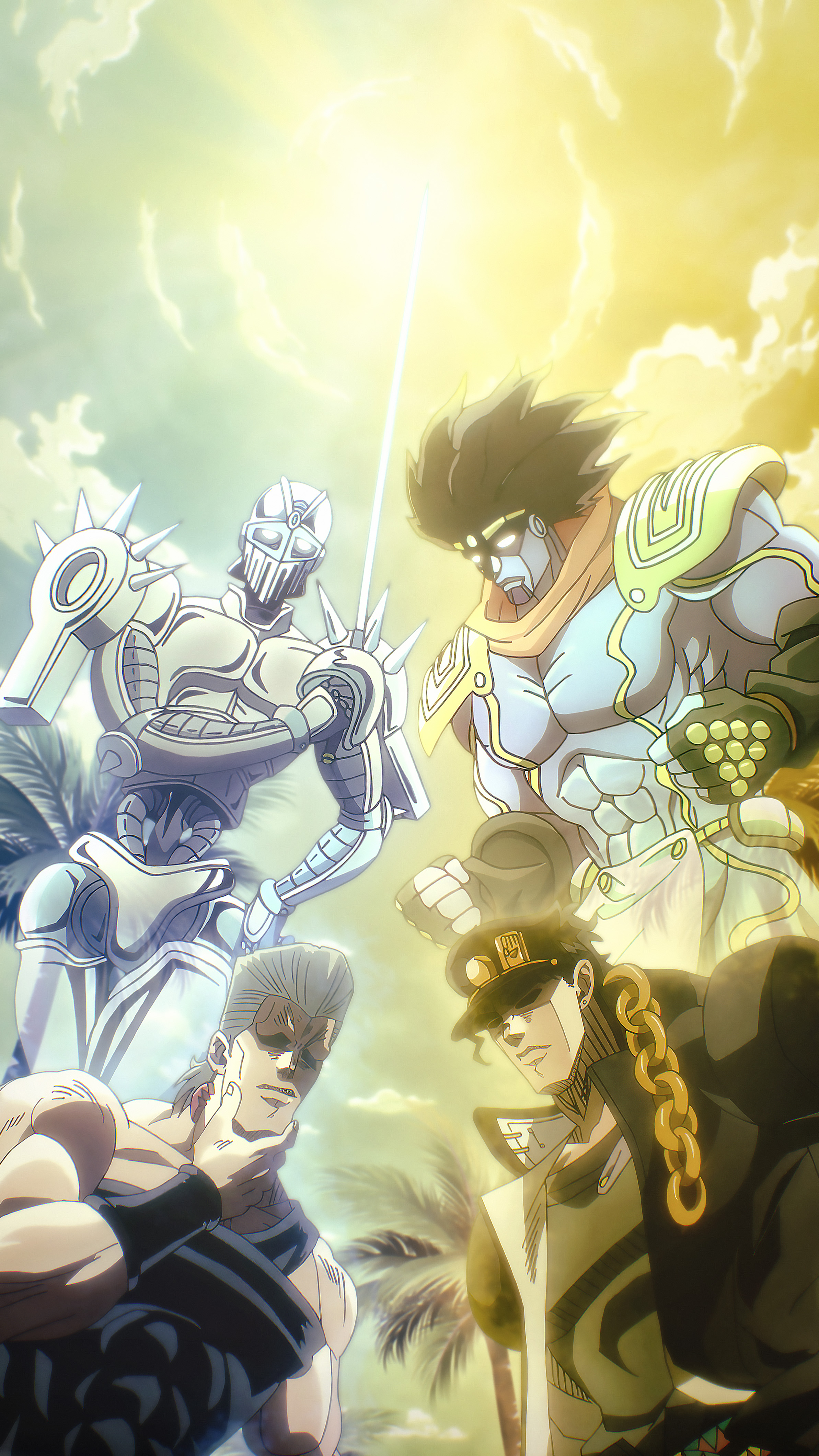 JoJo's Bizarre Adventure, Jotaro Kujo, Star Platinum, Silver Chariot, Jean Pierre Polnareff, anime wallpaper, 4K wallpaper, high resolution, Stardust Crusaders, anime art