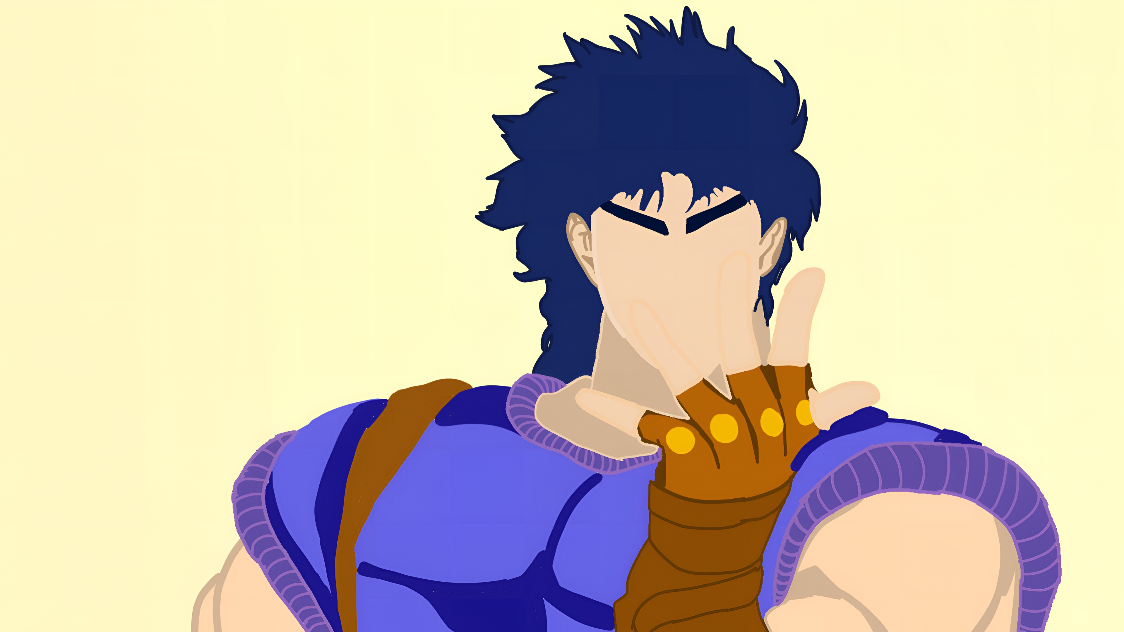 A stunning 4K minimalist wallpaper featuring Jonathan Joestar from JoJo's Bizarre Adventure. The character is depicted in a bold flat art style with his iconic blue outfit and fingerless gloves, covering his face dramatically.