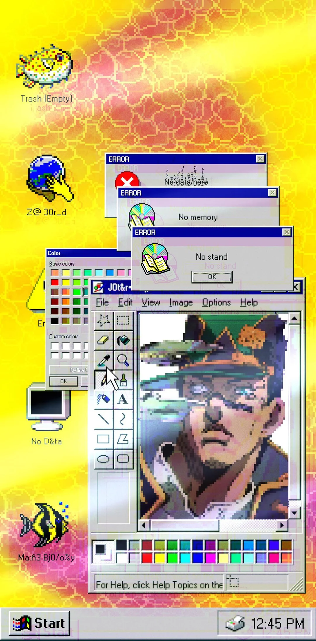 JoJo's Bizarre Adventure wallpaper, Jotaro Kujo, Frutiger Aero, retro Windows 98, 4K wallpaper, anime desktop wallpaper, nostalgic UI, MS Paint aesthetic, high resolution, vaporwave anime