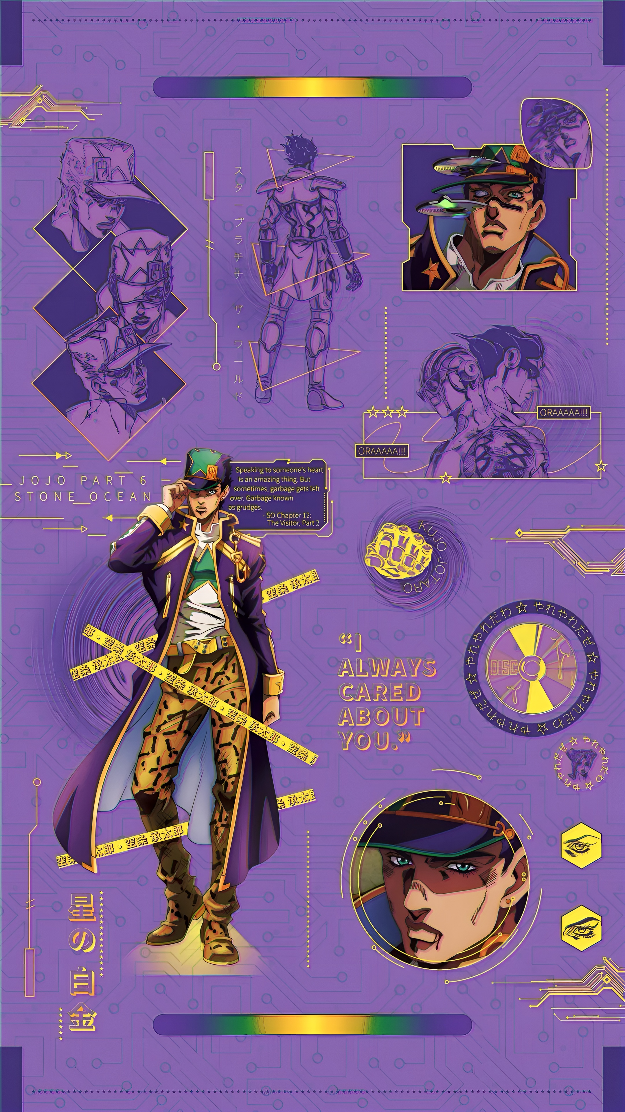 JoJo's Bizarre Adventure wallpaper, Jotaro Kujo 4K, Stone Ocean anime wallpaper, Star Platinum HD, JoJo anime phone wallpaper, purple gold aesthetic, high resolution anime art, Kujo Jotaro fan art