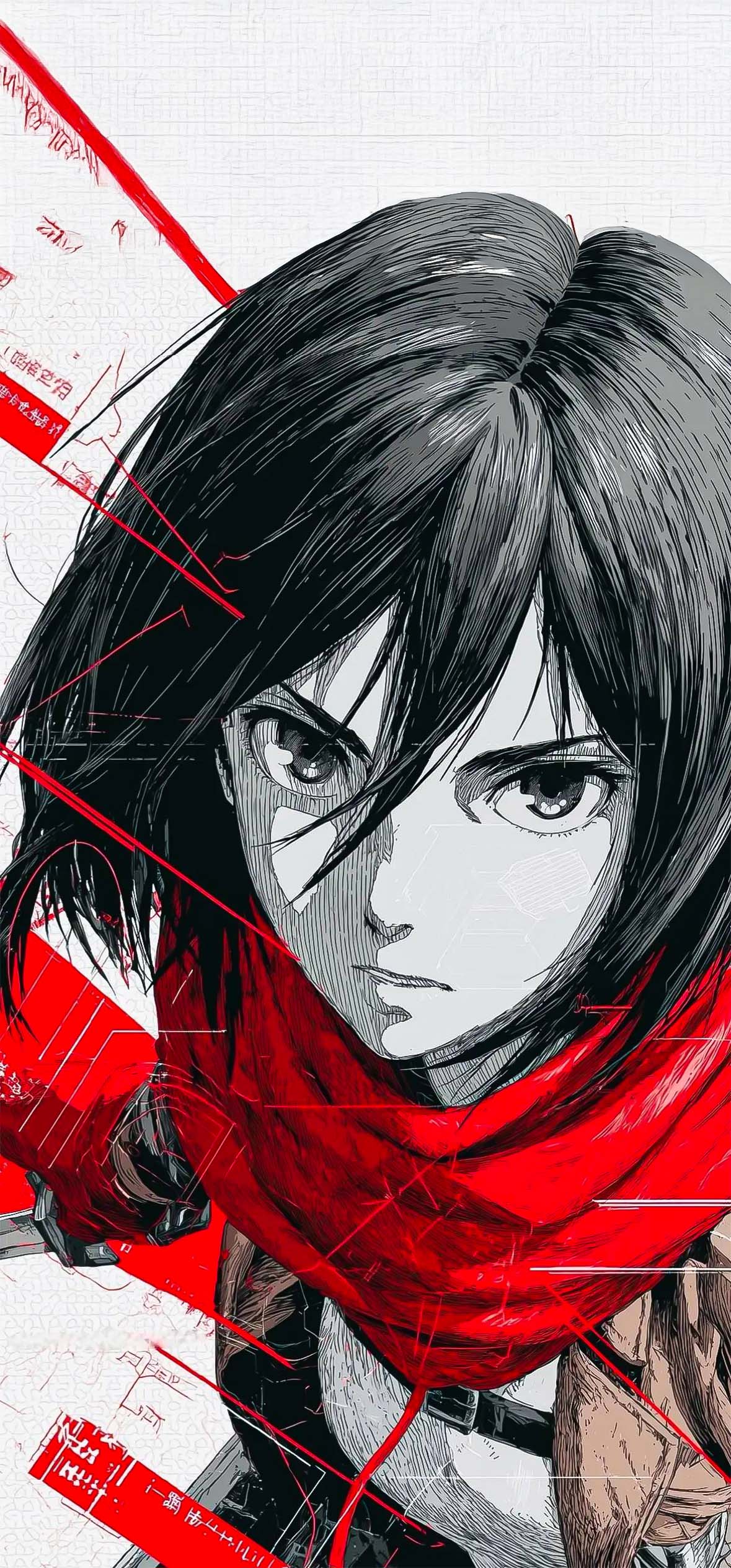 Mikasa Ackerman wallpaper, Attack on Titan 4K wallpaper, anime wallpaper high resolution, AOT manga art, Mikasa red scarf, Attack on Titan poster, anime phone wallpaper, Shingeki no Kyojin art, 4K anime wallpaper, manga style illustration