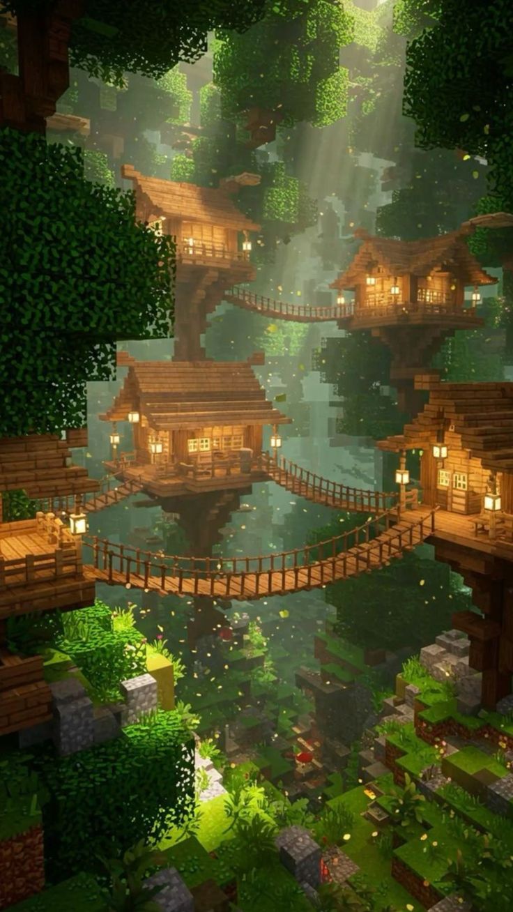 Minecraft Enchanted Forest Treehouse Village Wallpaper