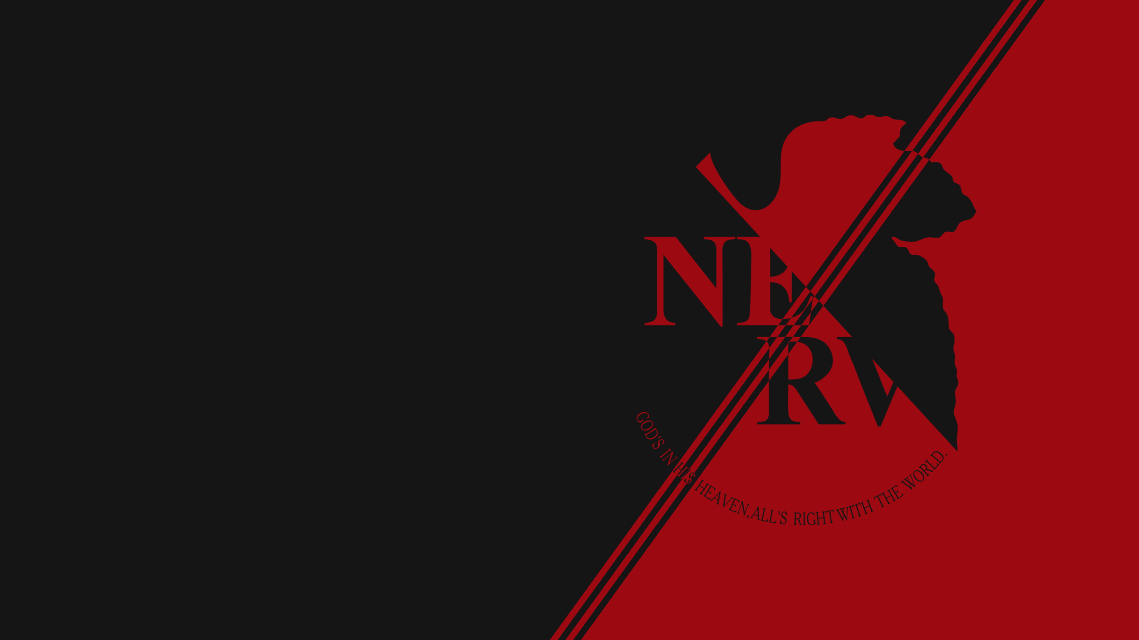 Stunning 4K high-resolution Neon Genesis Evangelion wallpaper featuring the iconic NERV logo in bold red and black. Includes the organization's motto 'God's in His Heaven, All's Right with the World' in a sleek minimalist design.