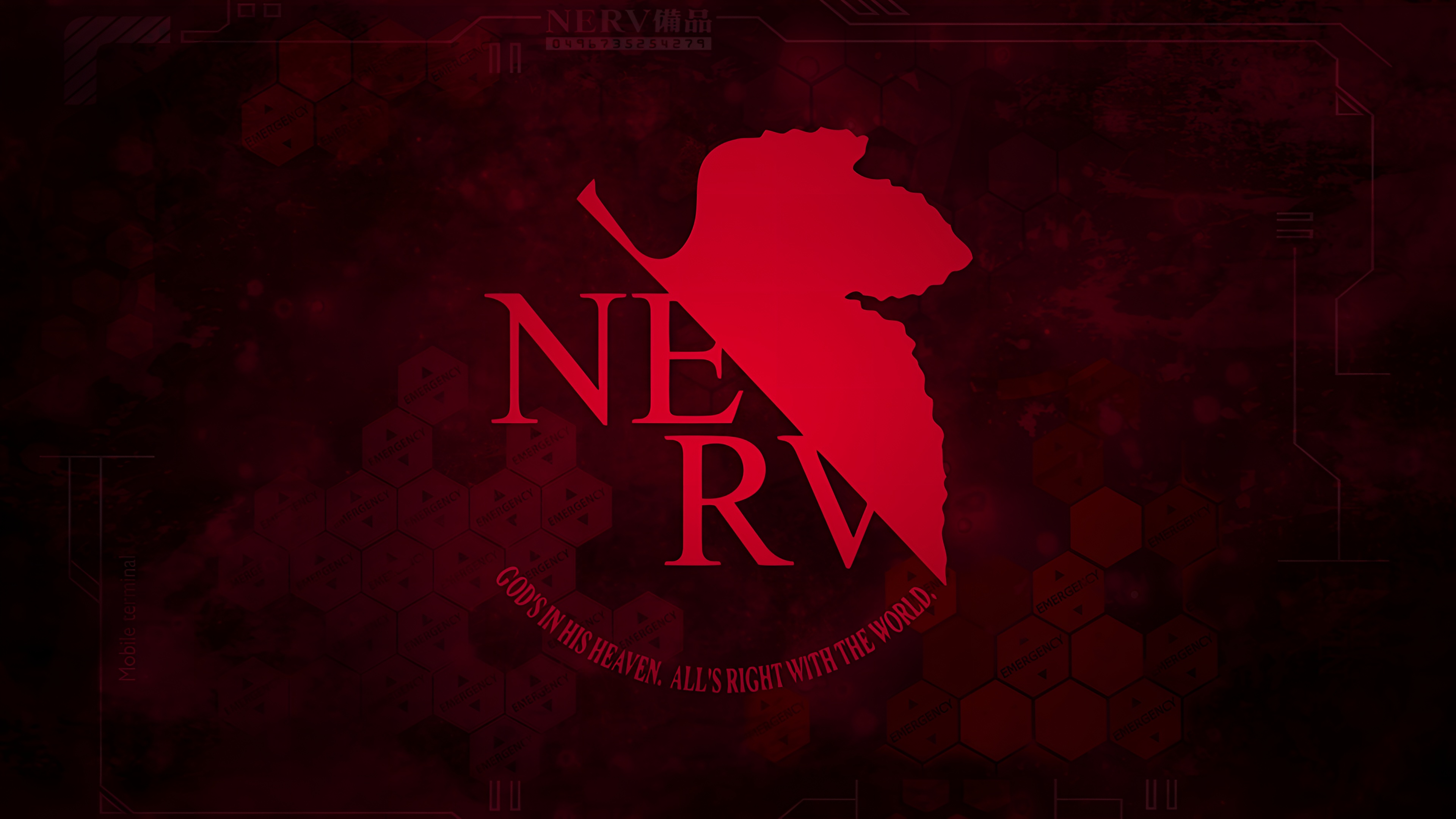 Neon Genesis Evangelion wallpaper, NERV logo wallpaper, 4K anime wallpaper, Evangelion dark red wallpaper, NGE NERV emblem, anime desktop background, high resolution Evangelion, NERV organization logo
