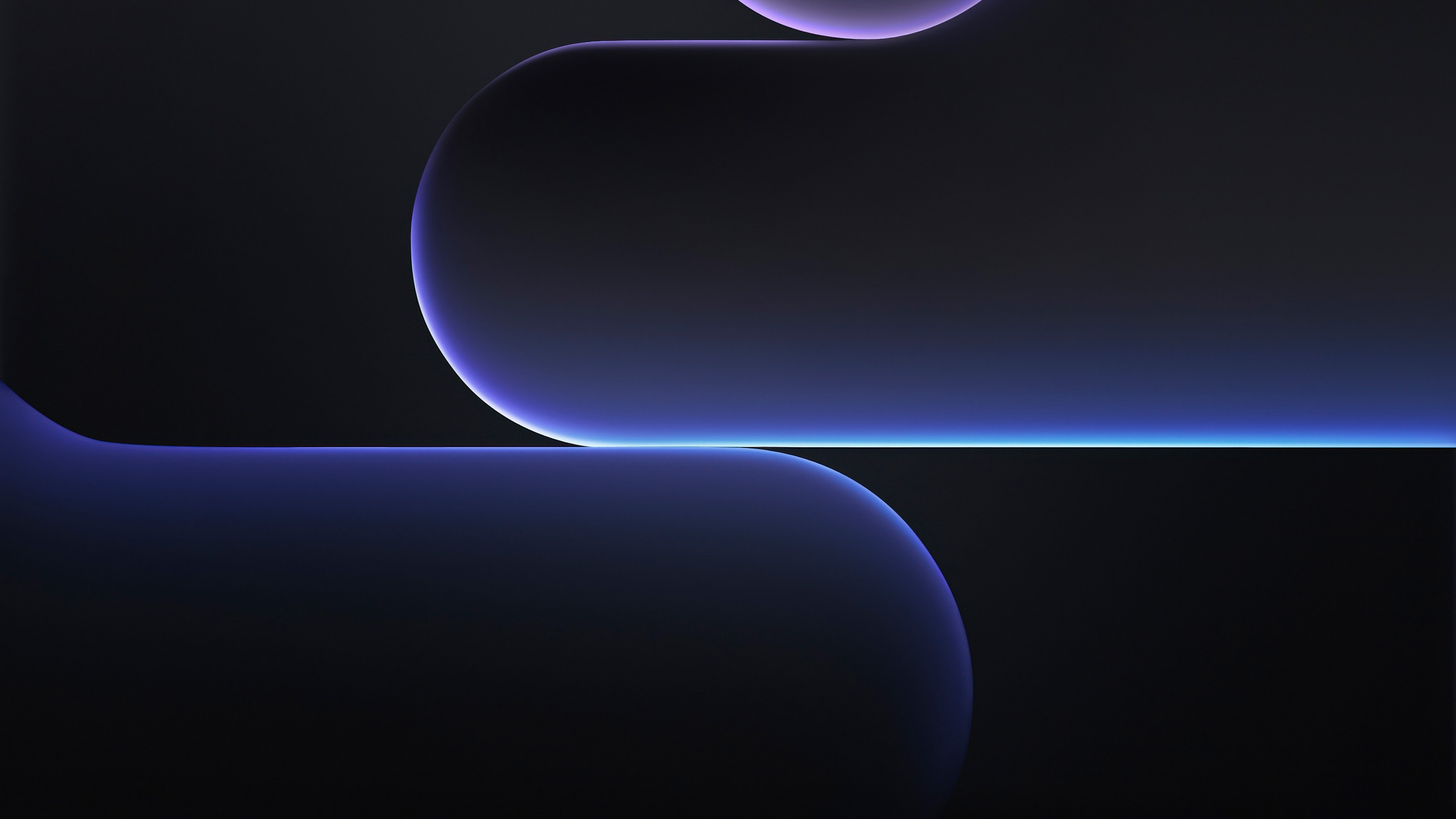 Stunning dark abstract wallpaper featuring luminous purple and blue spherical shapes with glowing edges against a deep black background. This high-resolution 4K image creates a mesmerizing cosmic atmosphere, perfect for modern desktop and mobile displays seeking an elegant, minimalist aesthetic.