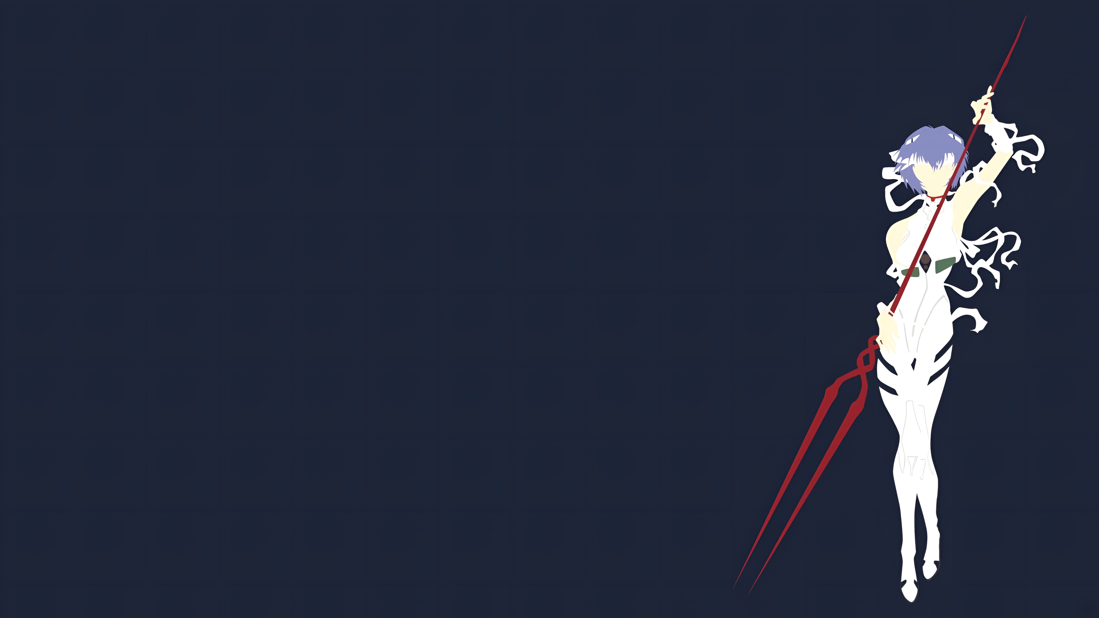 Rei Ayanami wallpaper, Neon Genesis Evangelion wallpaper, minimalist anime wallpaper, 4K anime wallpaper, Spear of Longinus, EVA wallpaper, high resolution anime, dark navy background, anime desktop wallpaper, NGE minimalist art