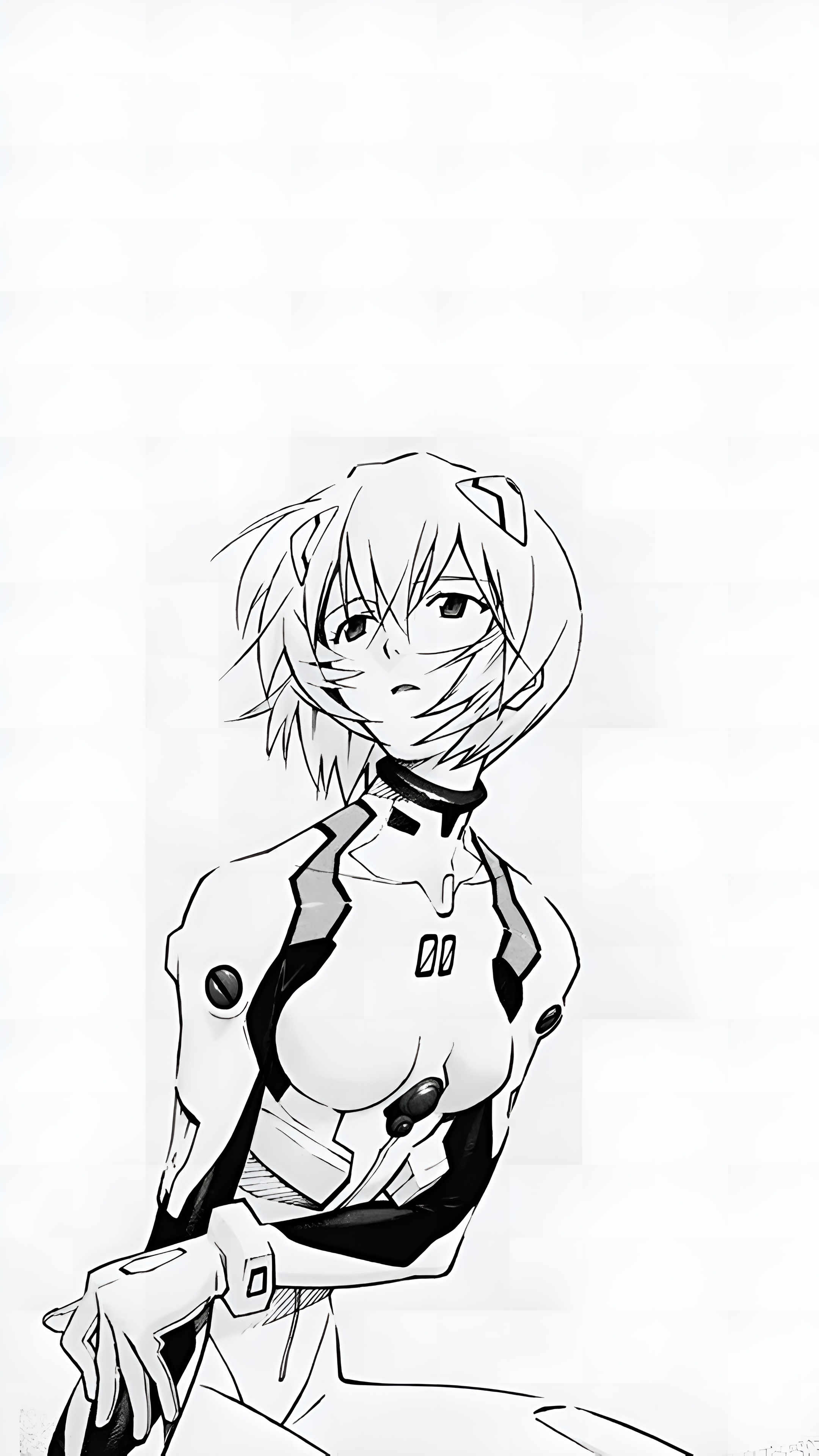 Rei Ayanami Wallpaper, Neon Genesis Evangelion Phone Wallpaper, Evangelion 4K Wallpaper, Rei Ayanami Plugsuit, Anime Phone Wallpaper, NGE Manga Art, Black and White Anime Wallpaper, High Resolution Evangelion, Rei Ayanami Art