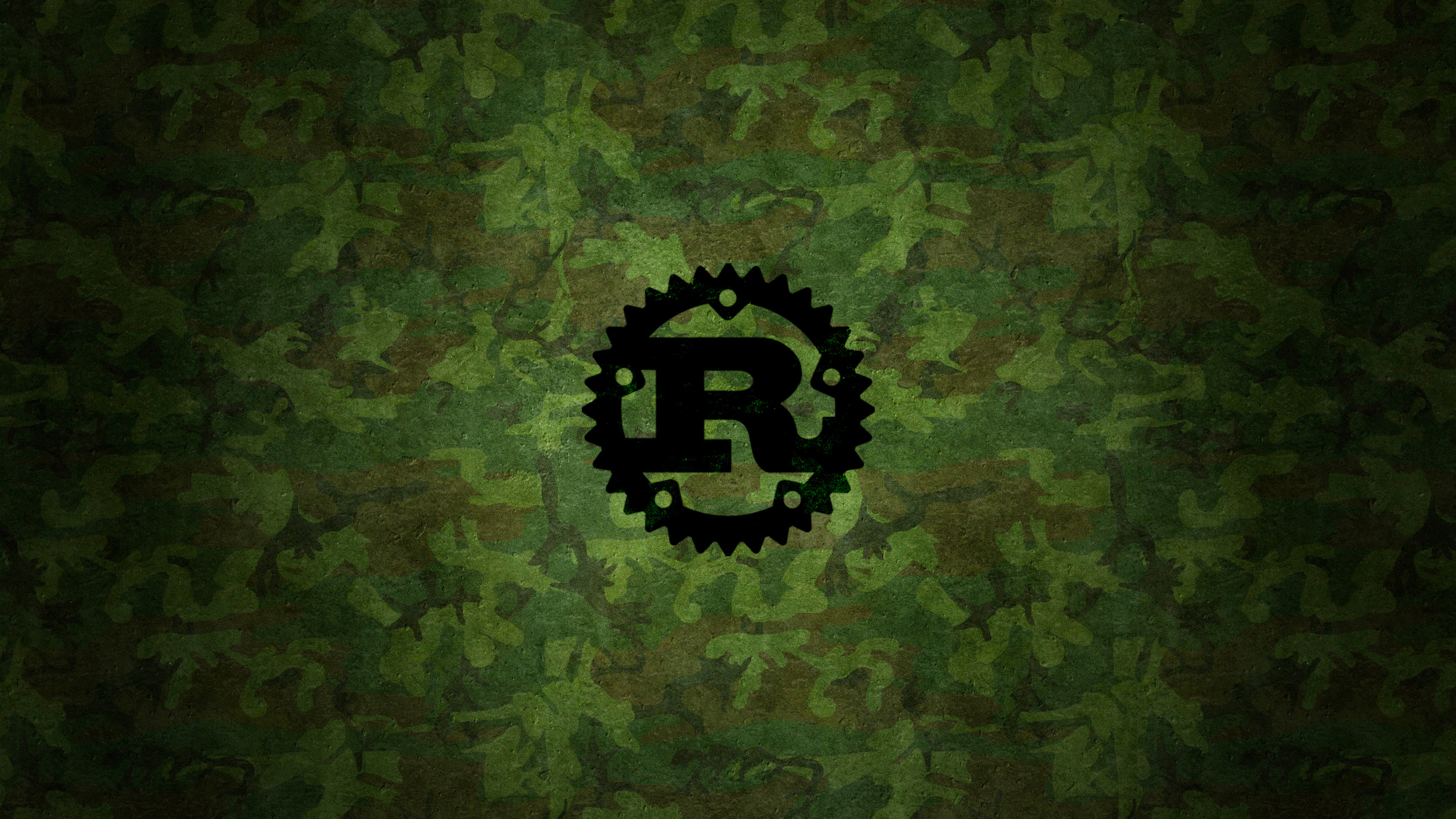 Rust programming language wallpaper, 4K Rust wallpaper, Rust logo camo background, high resolution programming wallpaper, Rust developer wallpaper, military camo Rust, systems programming wallpaper, Rust gear logo, UHD coding wallpaper, Rust lang desktop background