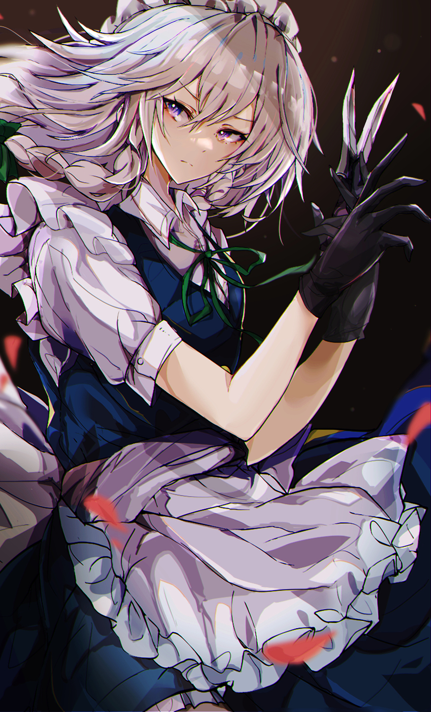 Sakuya Izayoi, Touhou Project, anime maid wallpaper, 4K high resolution, silver hair anime girl, fantasy maid outfit, dark anime wallpaper, anime girl wallpaper, high quality artwork, Touhou fan art