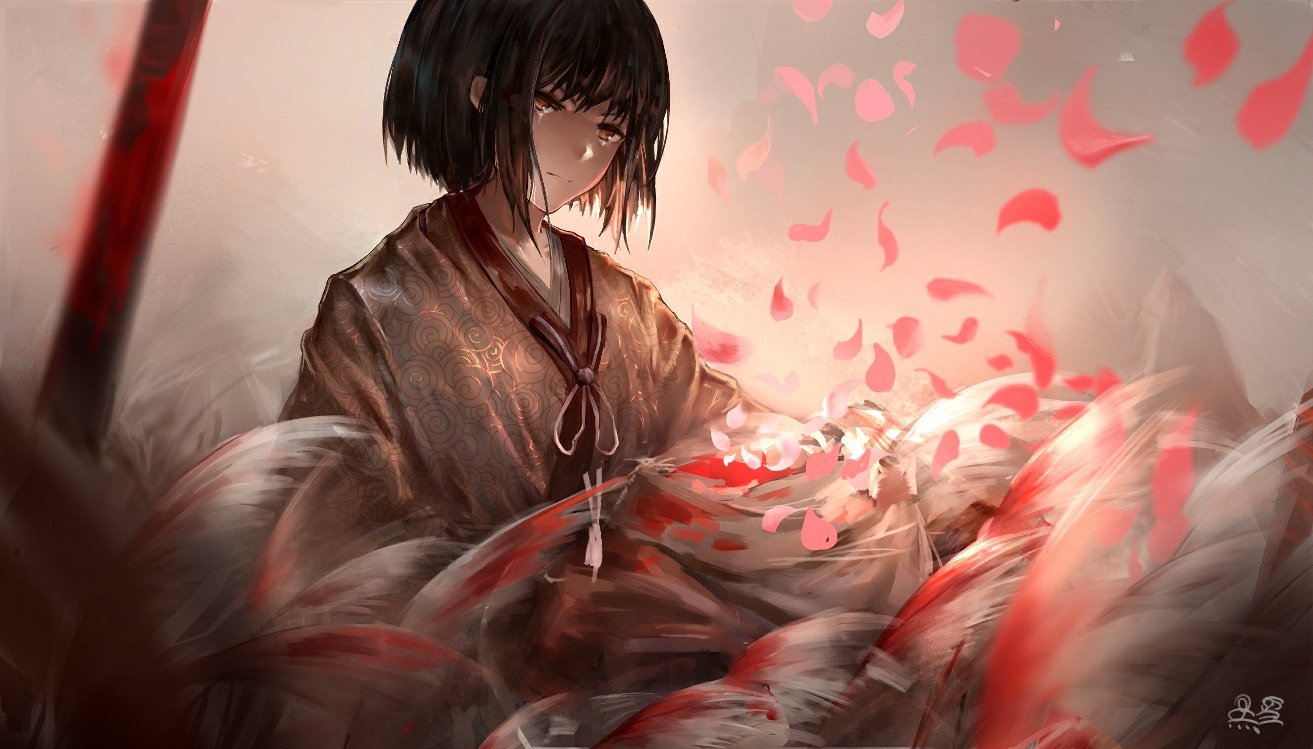 Sekiro wallpaper, 4K anime wallpaper, kimono warrior art, anime girl katana, high resolution anime, digital painting, cherry blossom petals, dark fantasy anime, samurai aesthetic, ultra HD wallpaper