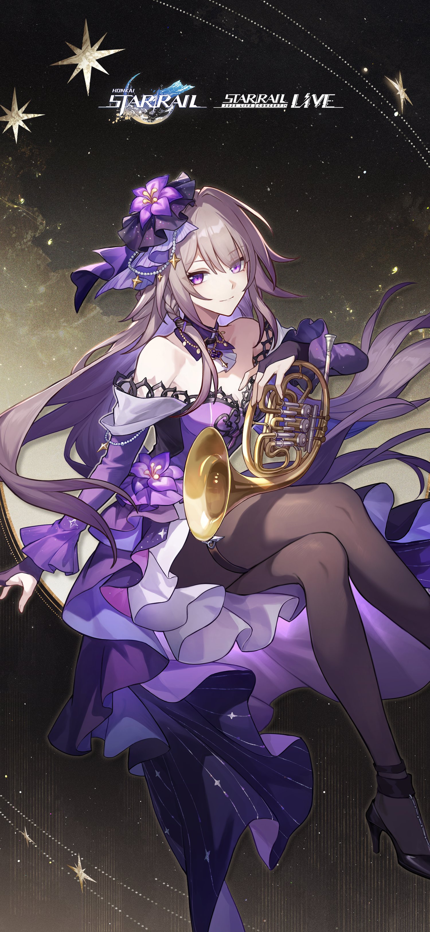 The Herta wallpaper, Honkai Star Rail, 4K anime wallpaper, Star Rail Live Concert, The Herta fan art, high resolution wallpaper, anime girl purple dress, Honkai Star Rail character, Star Rail 2025, French horn anime