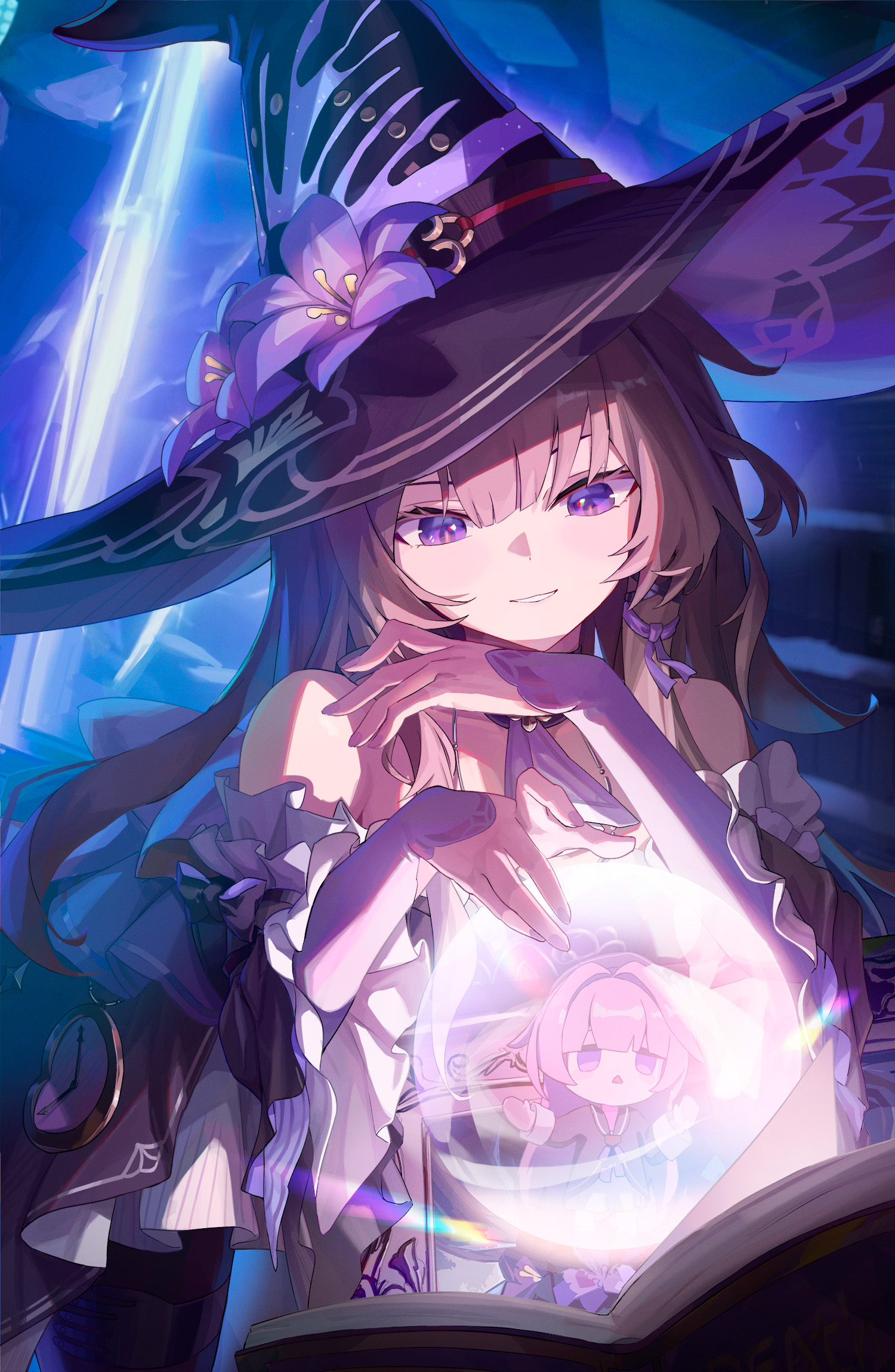 The Herta wallpaper, Honkai Star Rail 4K, anime witch wallpaper, The Herta fan art, Honkai Star Rail character, purple witch hat anime, high resolution anime wallpaper, The Herta spell casting, Honkai Star Rail HD, anime magic wallpaper