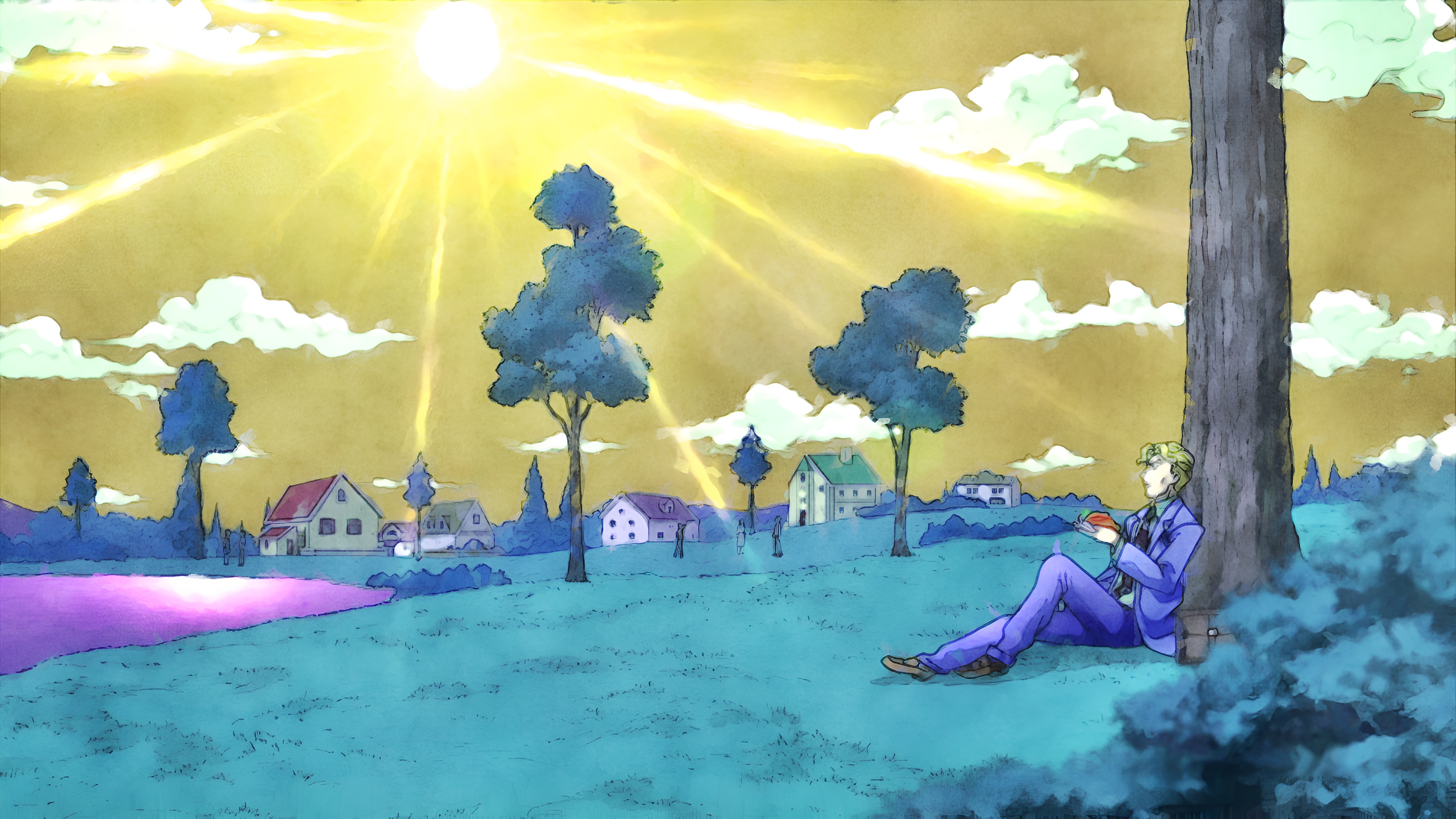 JoJo's Bizarre Adventure wallpaper, Yoshikage Kira, 4K anime wallpaper, high resolution anime, JoJo anime scenery, Kira peaceful scene, anime landscape wallpaper, ultra HD wallpaper, JoJo Part 4